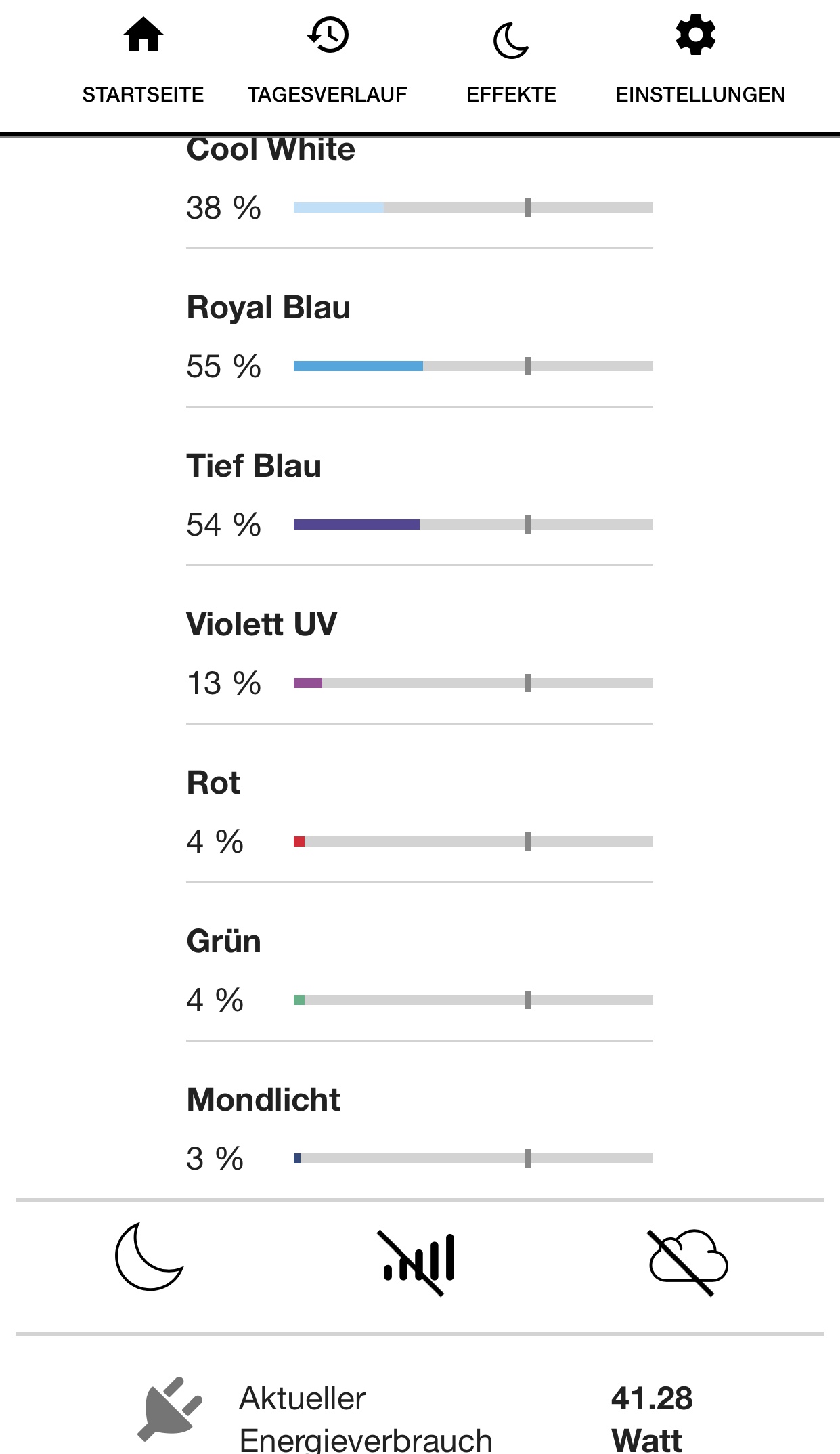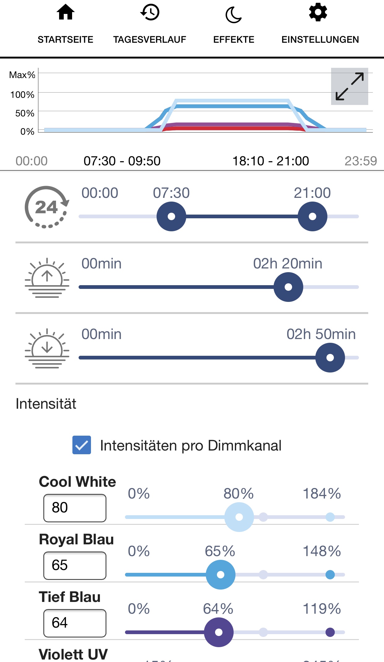 Lampeneinstellung von meiner AquaBar90+ von aquaLEDs :