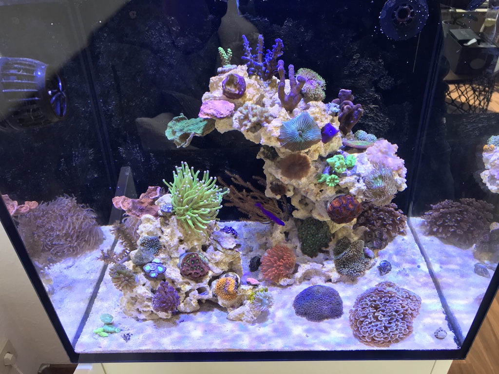 Die meisten Korallen schauen sehr gut aus. Hübsches Becken. Allerdings sind einige Korallen, welche Kampftentakeln haben, nah an anderen. Da wirst du, wenn diese wachsen Probleme bekommen. Frei nach dem Motto, der Stärkere setzt sich durch.