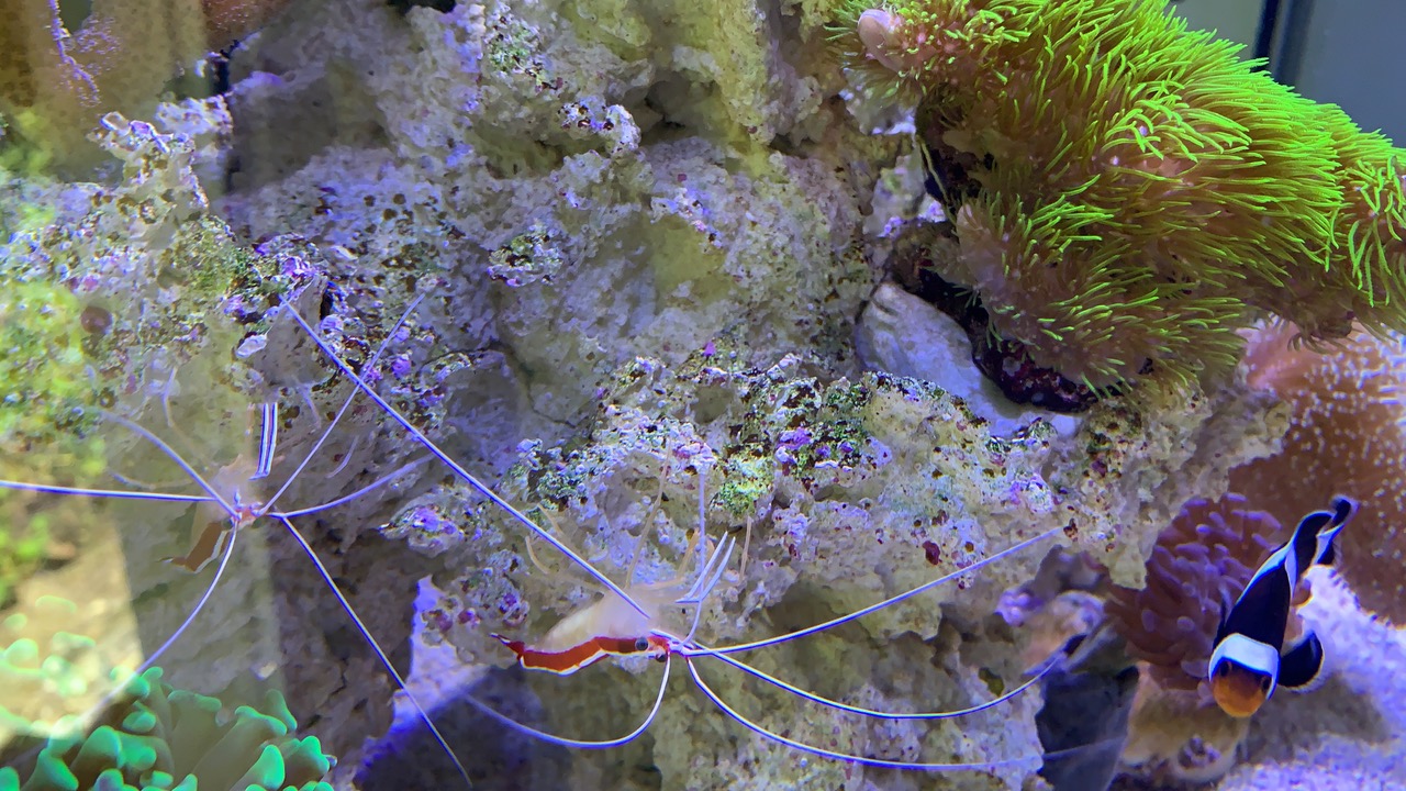 Aber alles passte zusammen, gestern Wasserwechsel, Harz war eigentlich schon alt, also maß ich mal Silikat im Osmosewasser…wieder so ein Anfängerfehler. Meine Putzercrew zog in das Becken ein und vertilgte die Algen.