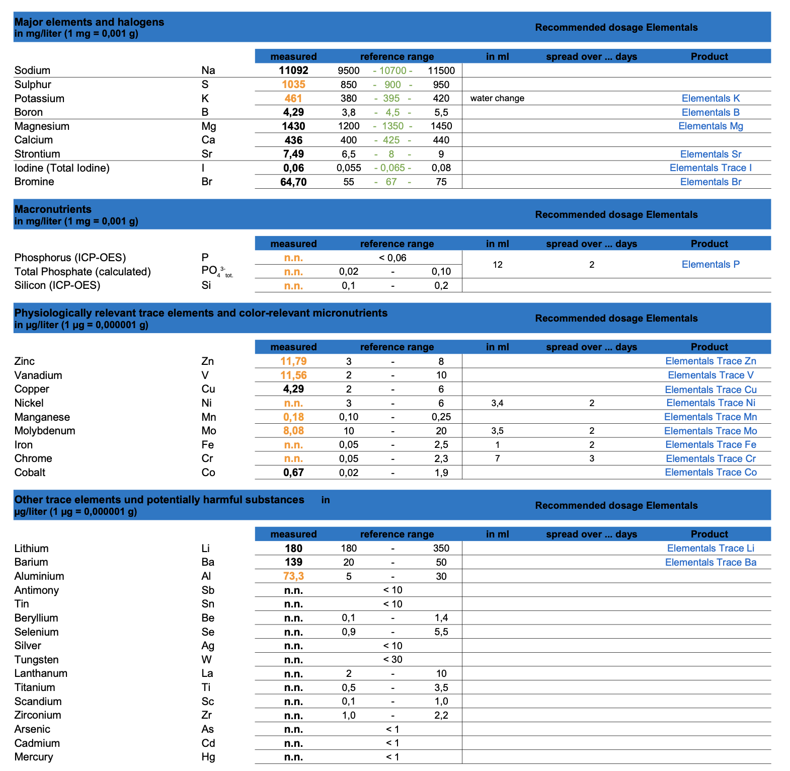 Anbei meine ICP von vor zwei Wochen. Aluminium ist sehr hoch...was bedeuten die anderen Ausreißer?