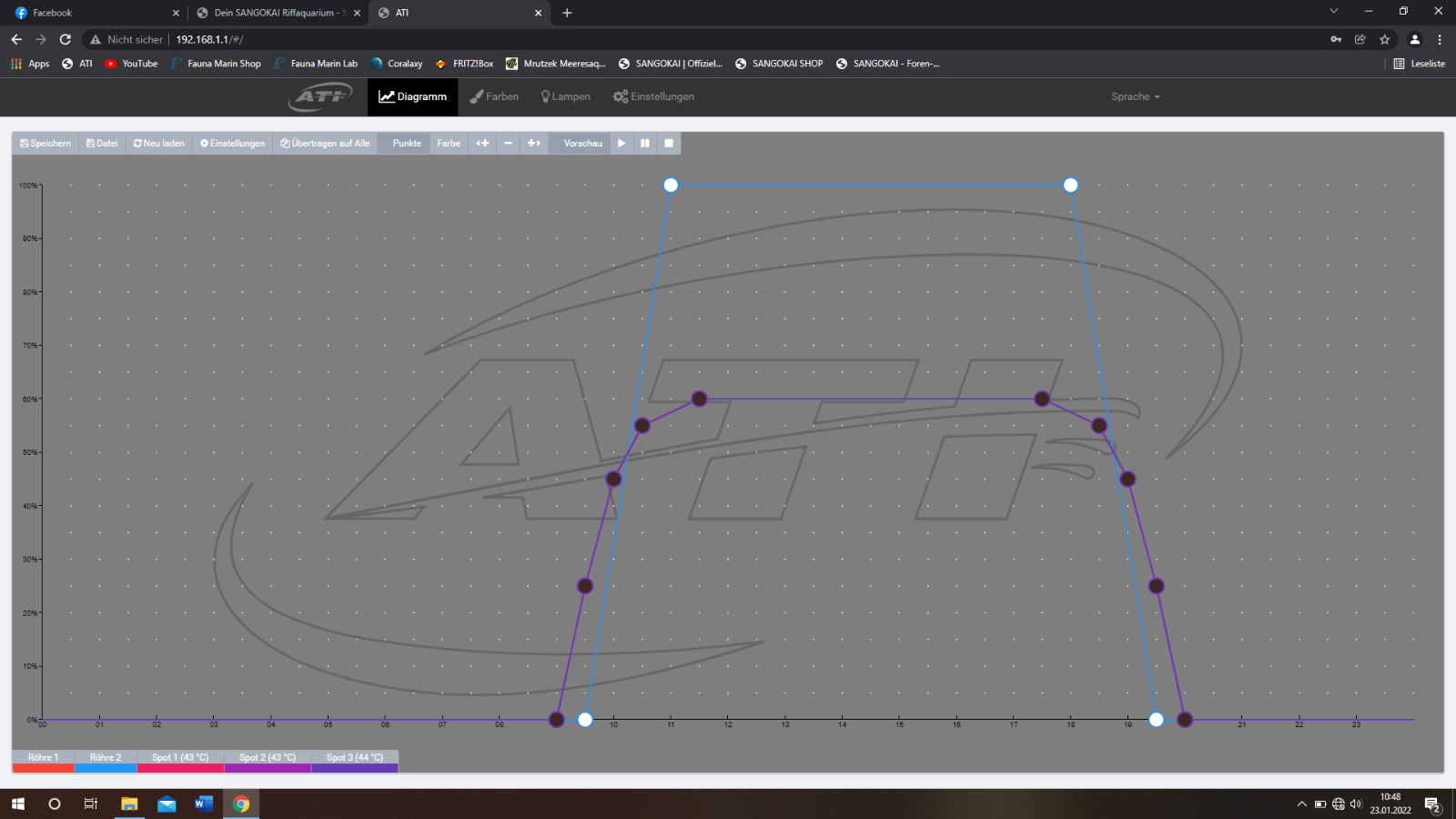 Meine Lampen Einstellung ist wie folgt. Die LED sind wie von Herren Jörg Kokott vorgeschlagen eingestellt. Und an T5 Röhren sind verbaut