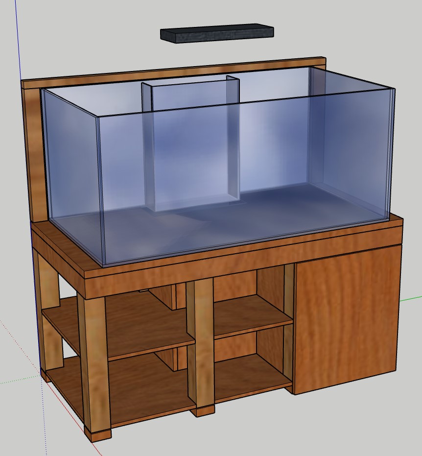 - Technikbecken: Standard-Glasbecken mit 130x50x50cm ca. 200L netto inkl. Ablegerabteil
