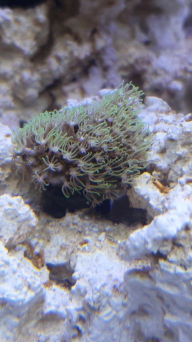 Ich habe also nach zwei Monaten erst einmal drei Weichkorallen (die Namen habe ich mir sträflicher weise nicht gemerkt), drei Krabben und ca. 10 Einsiedlerkrebse + Schnecken. Auch hier muss ich die Namen im Nachgang erst noch finden.