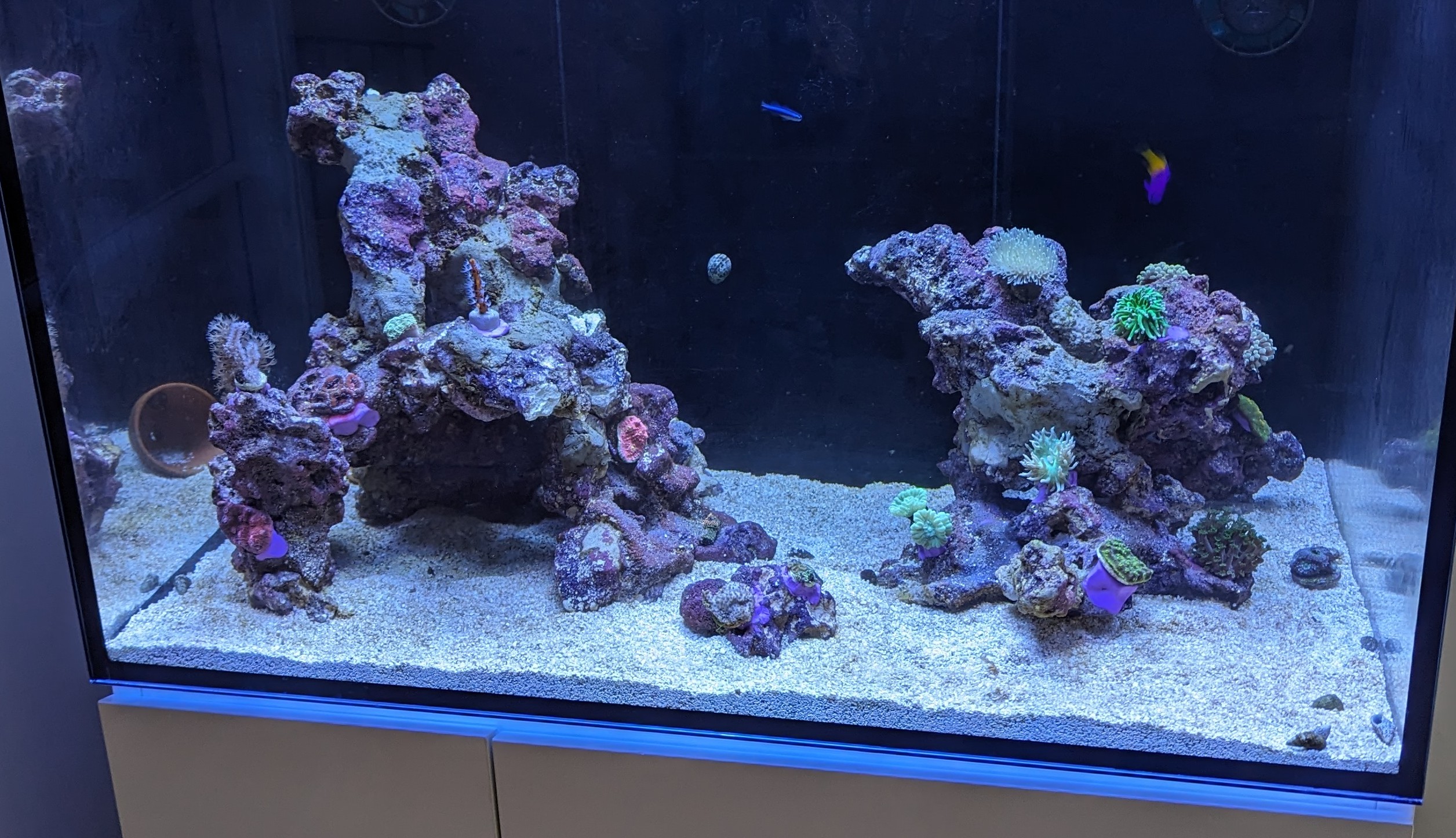 An fischen habe ich noch 2 gramma Loreto eingesetzt. Schnecken habe ich aufgestockt. Die neritas sehen aber eher mittelmäßig aus. Die trochus und Hummel und Napf Schnecken alle gut.