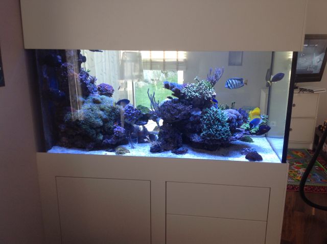 Seit 15 Jahren betreibe ich Aquaristik und seit knapp 8 Jahren habe ich ein Riffbecken. Ich bin eigentlich recht zufrieden mit meinem Becken - mir gefällt aber die Idee hinter Sangokai und so möchte ich mein System auch umstellen. Ich möchte weg von den blauen Falschen wie das hier genannt wird und zumindest einmal mit der Sangokai-Basis-Versorgung beginnen. Wenn es dem Becken gut tut finde ich das gut und wenn die Korallen noch schöner werden sollten passt das auch. Anbei einmal ein paar Bilder von meinem ca 1000l Becken. Das TB ist im Keller direkt darunter. Wenn das jemand sehen möchte kann ich da auch noch ein paar Fotos machen. Die genauen Daten stehen ja eh im Anamnesebogen - oder soll ich sie hier nocheinmal erläutern?