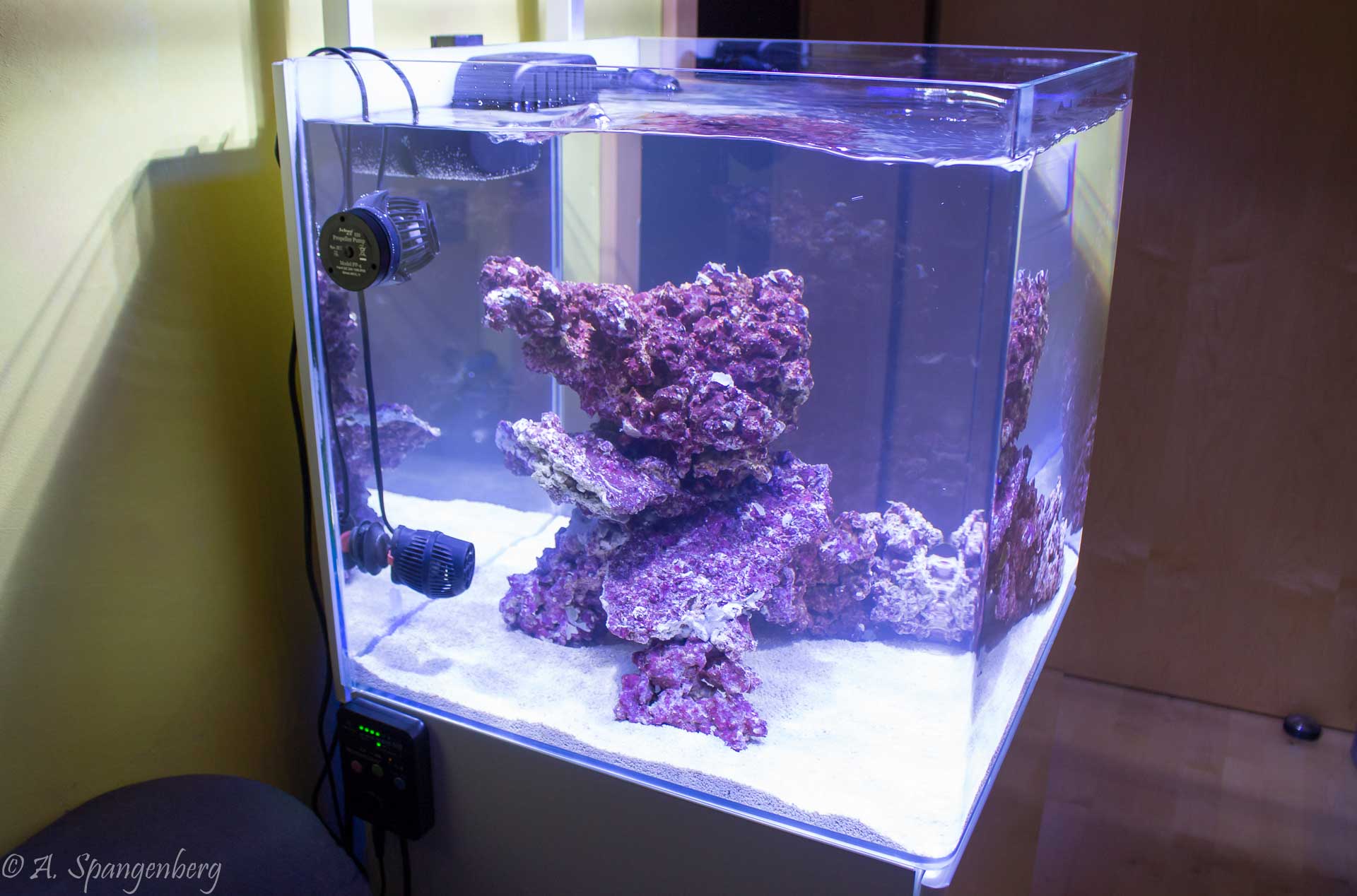 Ansonsten wird sich Dein Becken sicherlich gut entwickeln. Schaut gut aus. Wirklich sehr hübscher Aufbau. Ich würde Dir dazu raten, dass Du das Wasser frühzeitig mal mit einer Fauna Marin economy Analyse checken lässt, damit Du Mangelsituationen, die sich z.B. direkt aus dem Meersalz ergeben, frühzeitig entdecken kannst (Kalium-, Bor- und Iodmangel sind hier häufige Probleme).