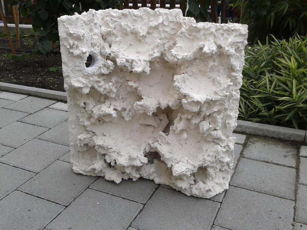 Da ich bisher immer ein Algenrefugium angeschlossen hatte und damit sehr gute Erfahrungen sammeln konnte, habe ich überlegt, wie dies bewerkstelligt werden könnte. Nachdem ich mich dazu durchgerungen hatte, musste ich feststellen, dass ein einfaches kleines Refugium nicht gerade billig ist. Also bin ich beim SERA Cube gelandet. Dieses habe ich mit einer normalen Rückwand von Korallenwelt versehen. Im beiden Becken sind ansonsten nur ganz normale Kaufteile verarbeitet wurden, überwiegend Äste usw. Als Fisch würde ich bei mir sofort einziehen, da ich jede Menge Höhlen, Verstecke usw. anbieten kann. Allerdings auch jede Menge Siedlungsfläche usw. Mal schauen, einfach im Hinblick auf ein tolles Korallenwachstum habe ich es mir damit nicht gemacht.