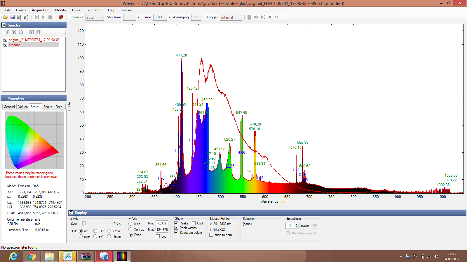 Was uns danach aufgefallen war das wir bei Hqi und auch in der Absorption immer Infrarot anteile zu finden waren.