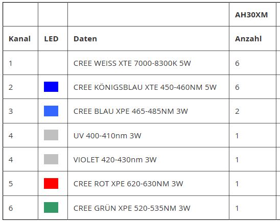 Einstellungsempfehlung Aquarium Systems AH30XM Serie 6 Marine LED 78 Watt
