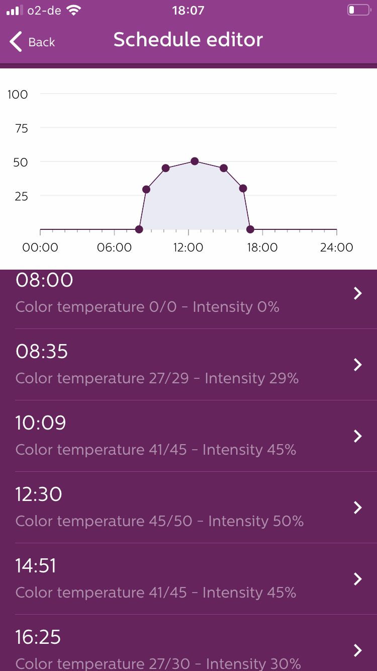Habe mit meinem Mann heute mal einen Tagesverlauf erstellt z.T. abgeschaut aus einem anderen Post. TML bei 50 %, Lampe 25 cm über der Wasseroberfläche bei einer Beckentiefe von 52 cm, 9h Anfangs-Beleuchtungsdauer.