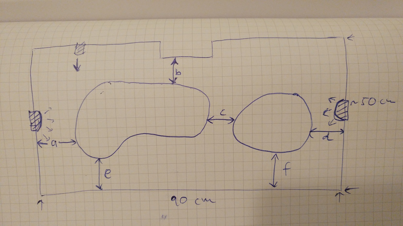 Ich habe meinen Riffaufbau mit Real Reef Rocks geplant wie im Anhang dargestellt. Innerhalb der Kreise soll das Riff sein (eine große und eine kleine Riffinsel von den Seiten her ansteigend).