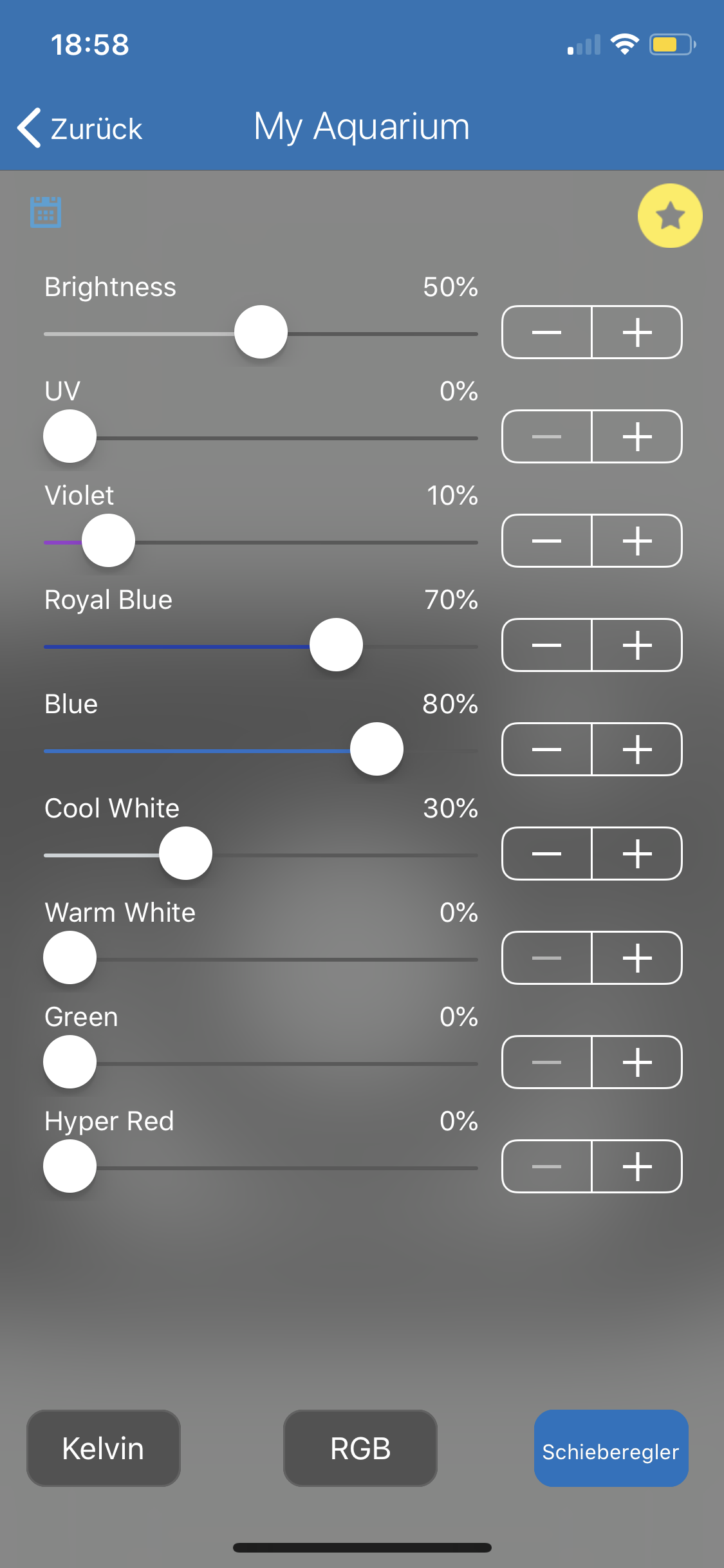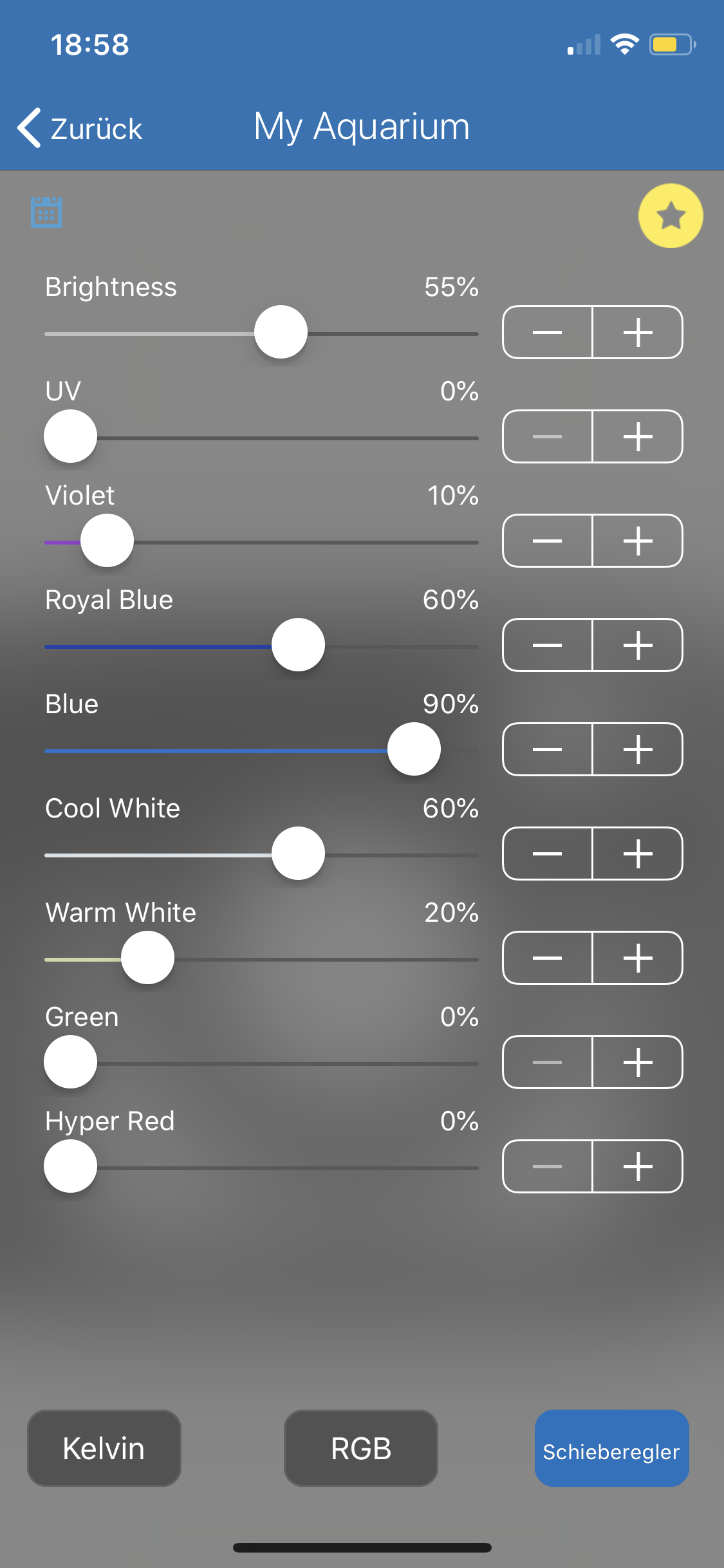 UV/violett max. 10-15% (bei Wachstumsstörungen am besten ganz ausmachen)