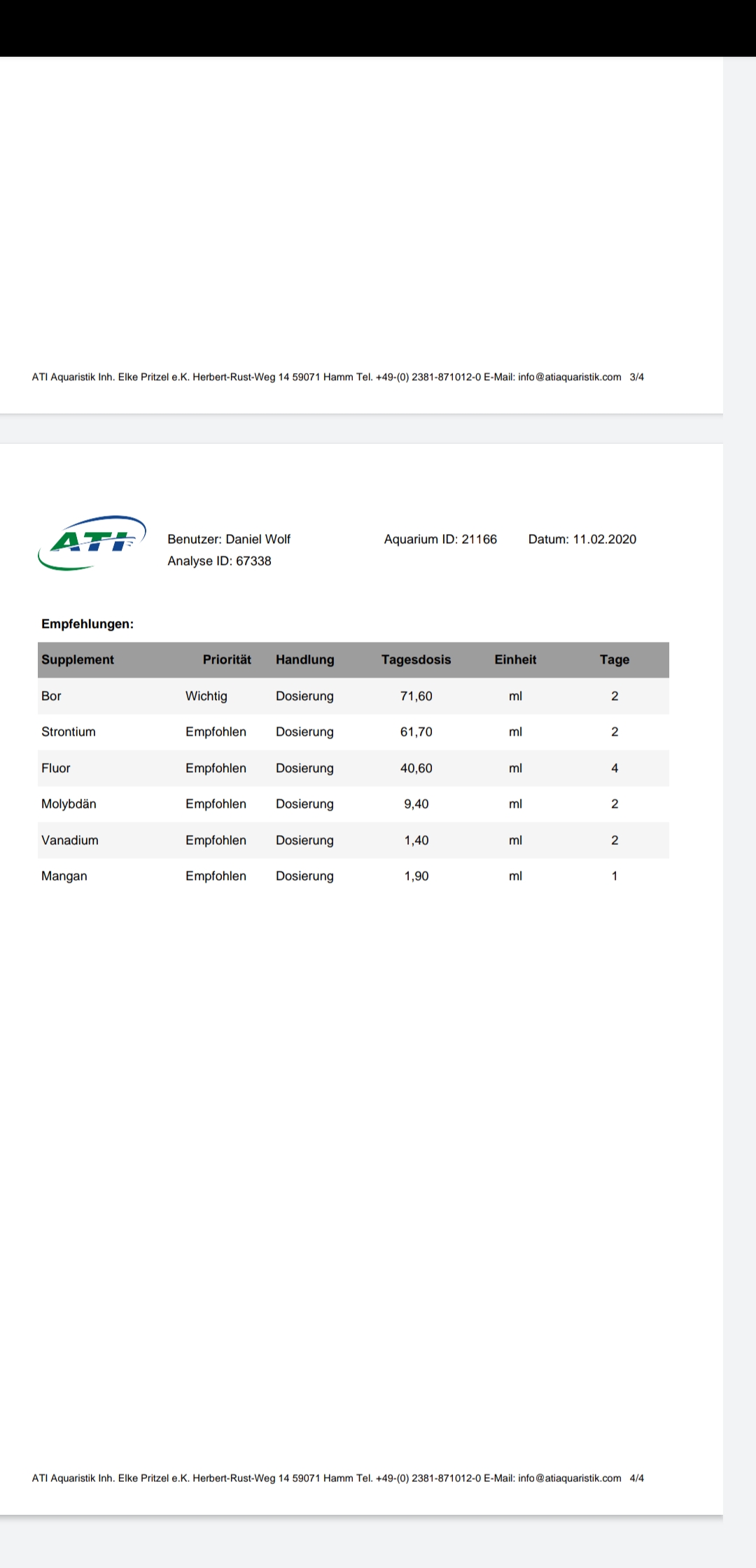 Bei der nächsten Analyse kannst dann schauen, ob der Bor und Strontium-Wert wieder gesunken ist und du eine regelmäßige Dosierung benötigst.