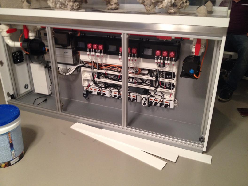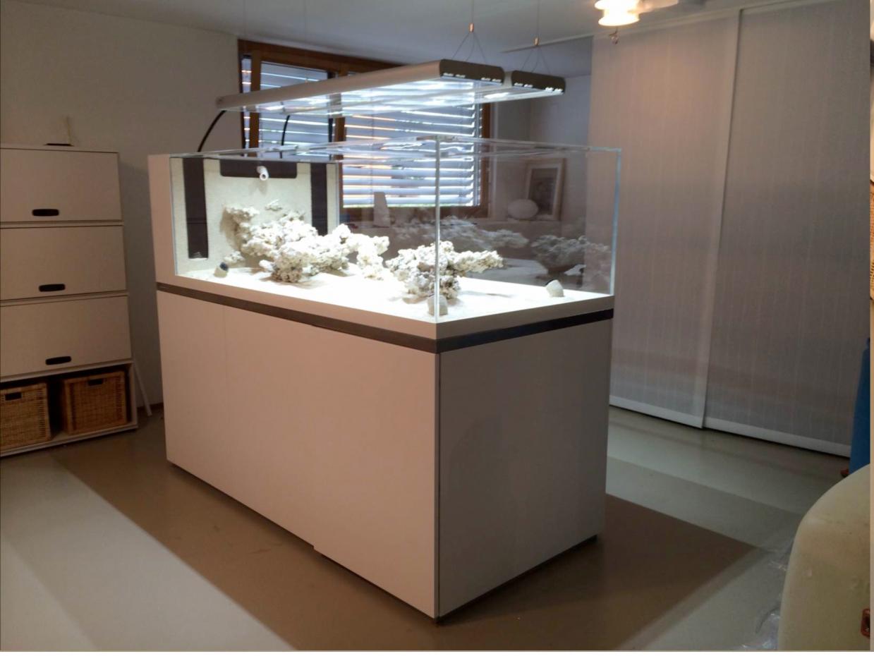 Hallo zusammen. Mein Name ist Markus und ich lebe in Basel in der Schweiz. Bitte entschuldige mein Deutsch, denn meine Muttersprache ist Englsich. Vor 1 1/2 Jahre habe ich mein Becken mit der Firma Seaplanet entwickelt und gebaut. Nach viele Variante habe ich mich für ein 1224 Liter (Brutto) Aquarium entschieden. Mein vorheriges Aquarium war ein 580 Liter Becken. Es lief eigentlich sehr gut aber ich wollte etwas vergrössern. Meine wirkliche Passion sind SPS Acroporas und deren Farben. Weiss aber auch wie Heikel es ist die Farben konstant zu halten. In den sieben Jahren seit ich zum Hobby kam, habe ich einige Systeme getestet, bin aber von Sangokai am meisten überzeugt. Das neue Aquarium läuft seit Beginn auf Sangokai. Es ist ein Nährstoffarmes Becken aber weil ich ein gemischtes LPS SPS Becken mag, sind die Werte über null.