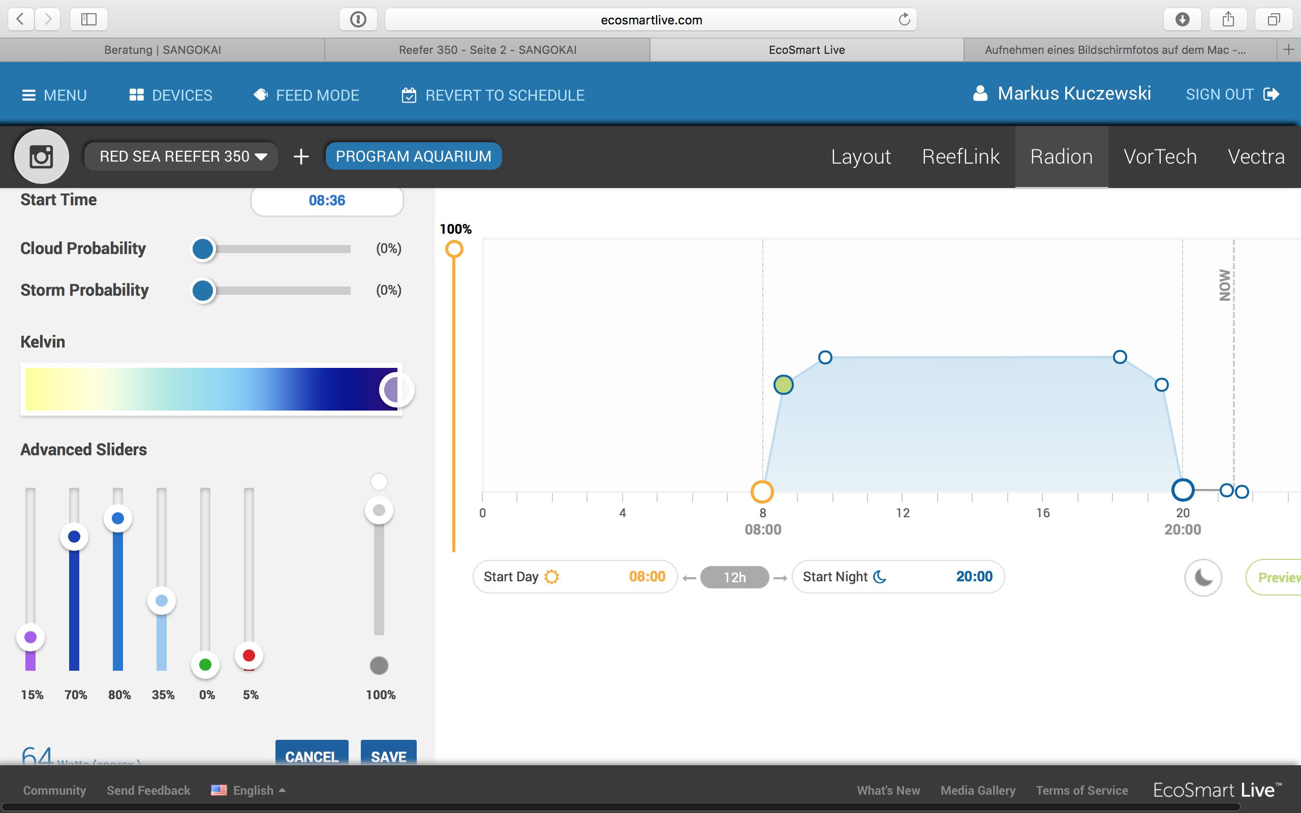 ok dann dosiere ich erstmal kein Calcium. Die Änderungsvorschläge sind super. Ich habe das Beleuchtungsprofil mal angepasst. Mal sehn was es so bringt. Meine Rückförderpumpe habe ich auf 20% gedrosselt. Ich habe mal versucht eine 2te Strömungspumpe zu installieren, mir kommt dann aber die Ströumg so extrem vor. Habe daher aktuell die MP40 in der Leistung erhöht auf 70%. Eine Lampe zur Beleuchtung werde ich mir noch zulegen wenn es das Geld wieder zuläßt.