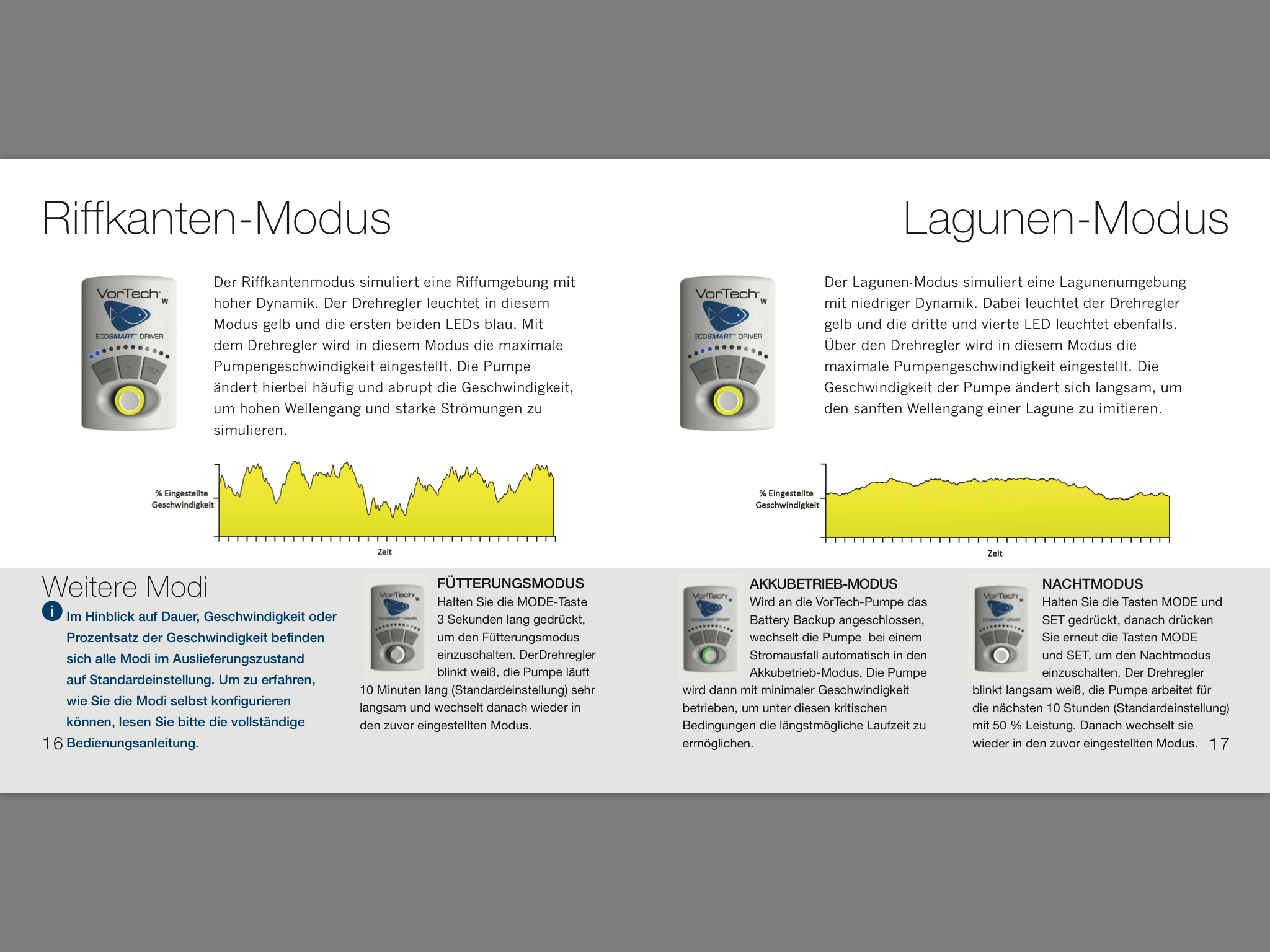 Mit 60% laufen die Pumpen im Riffkanten Modus.