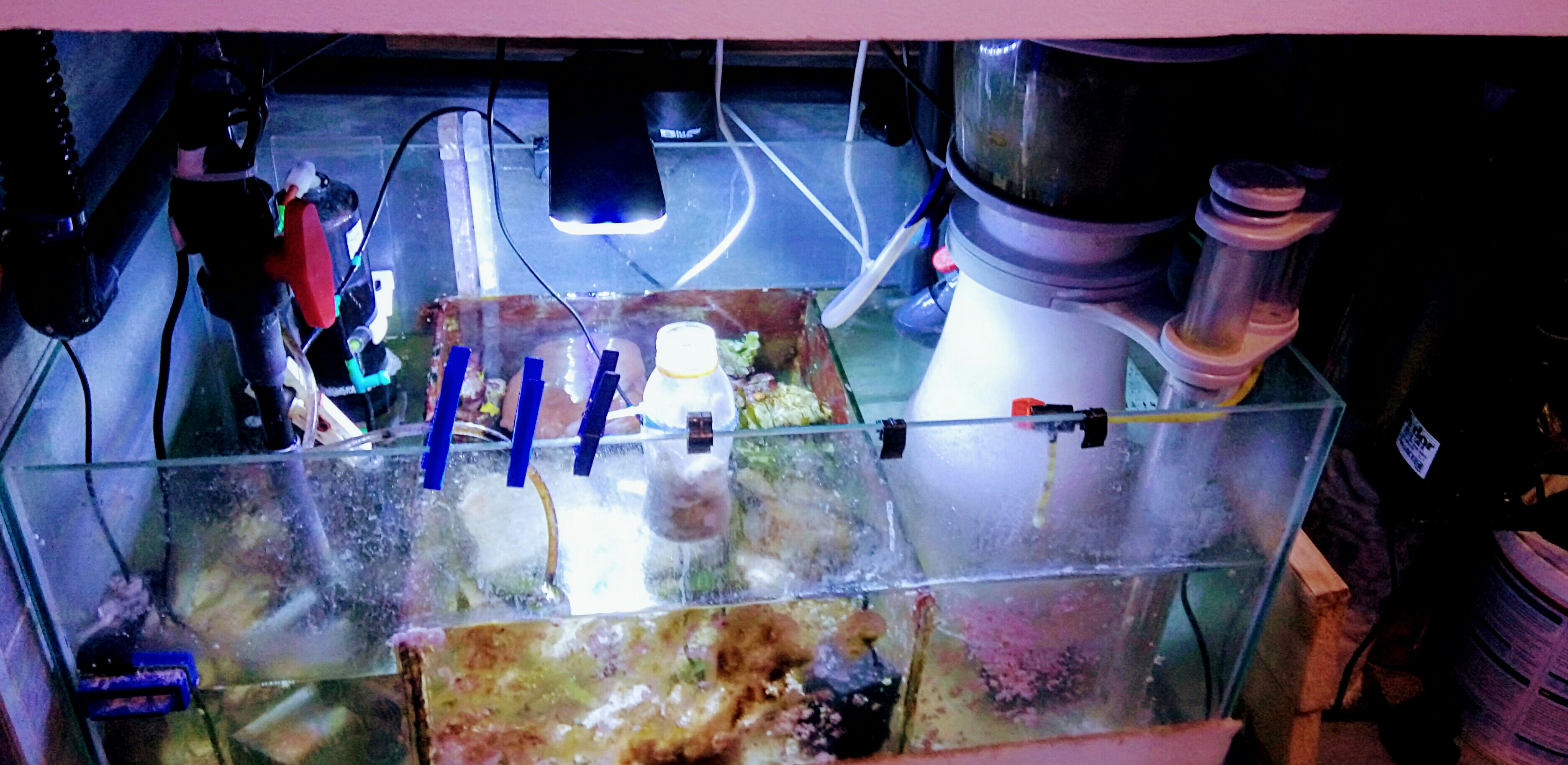 Die Foto ist vom 16.11.2016, man sieht eine Riffdeko in Weis welche noch neu ist, das PO4 Problem war aber schon vorher vorhanden