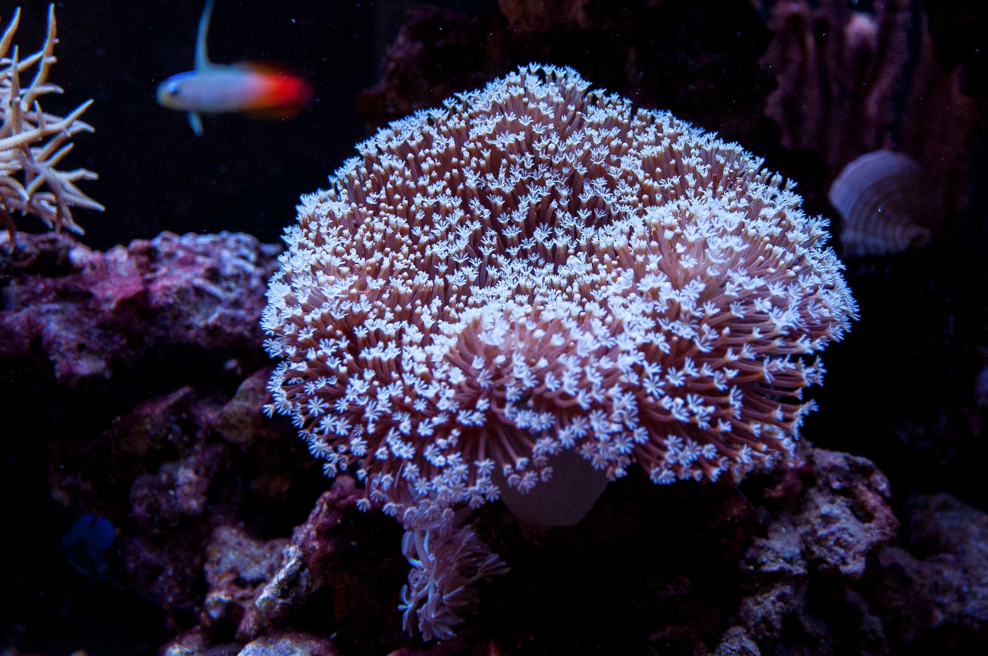 2. Könnten die Tentakel noch länger werden und damit doch die anderen Korallen erreichen? Die Strömung drückt nach rechts Richtung Pilzleder Koralle.