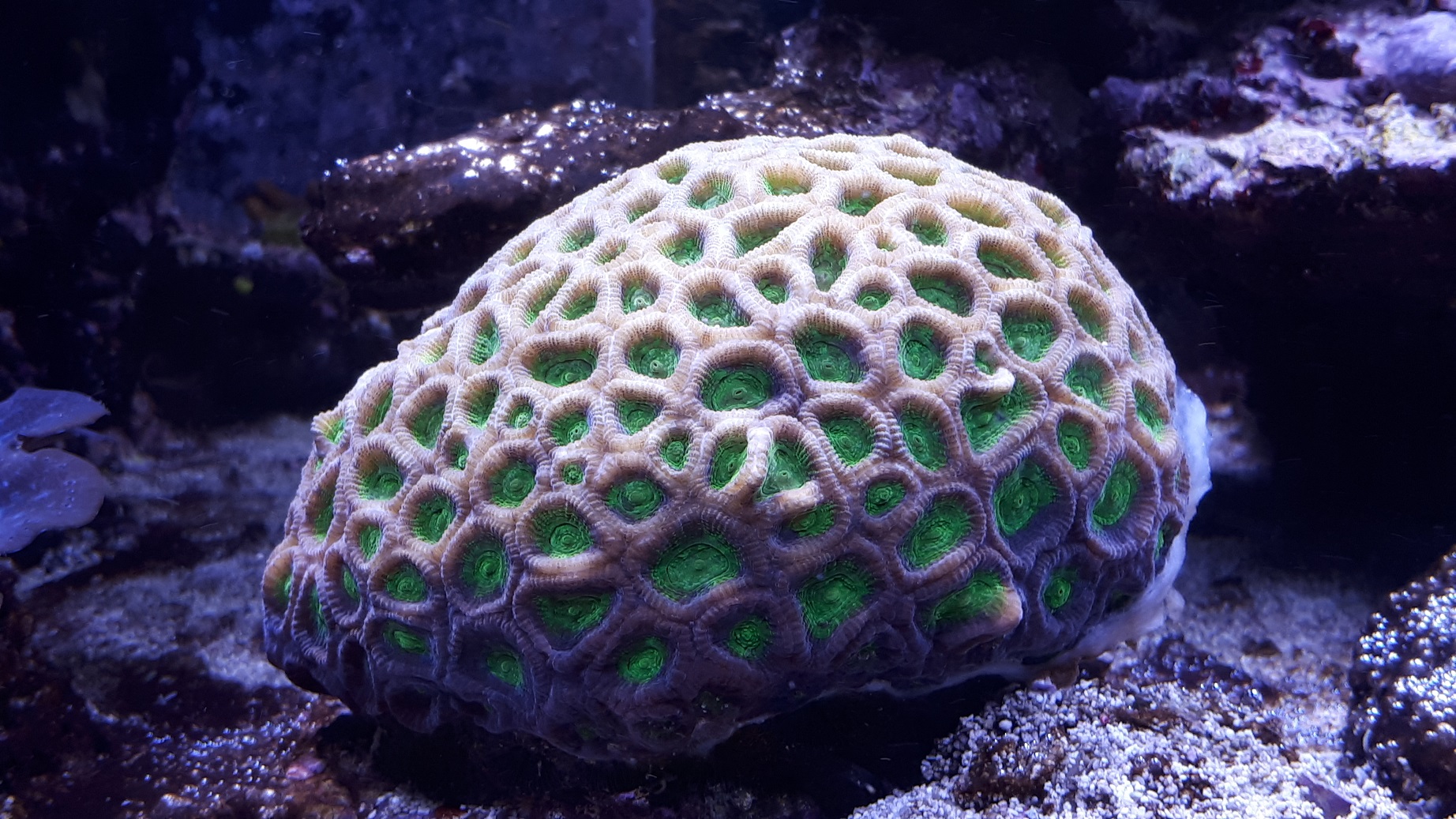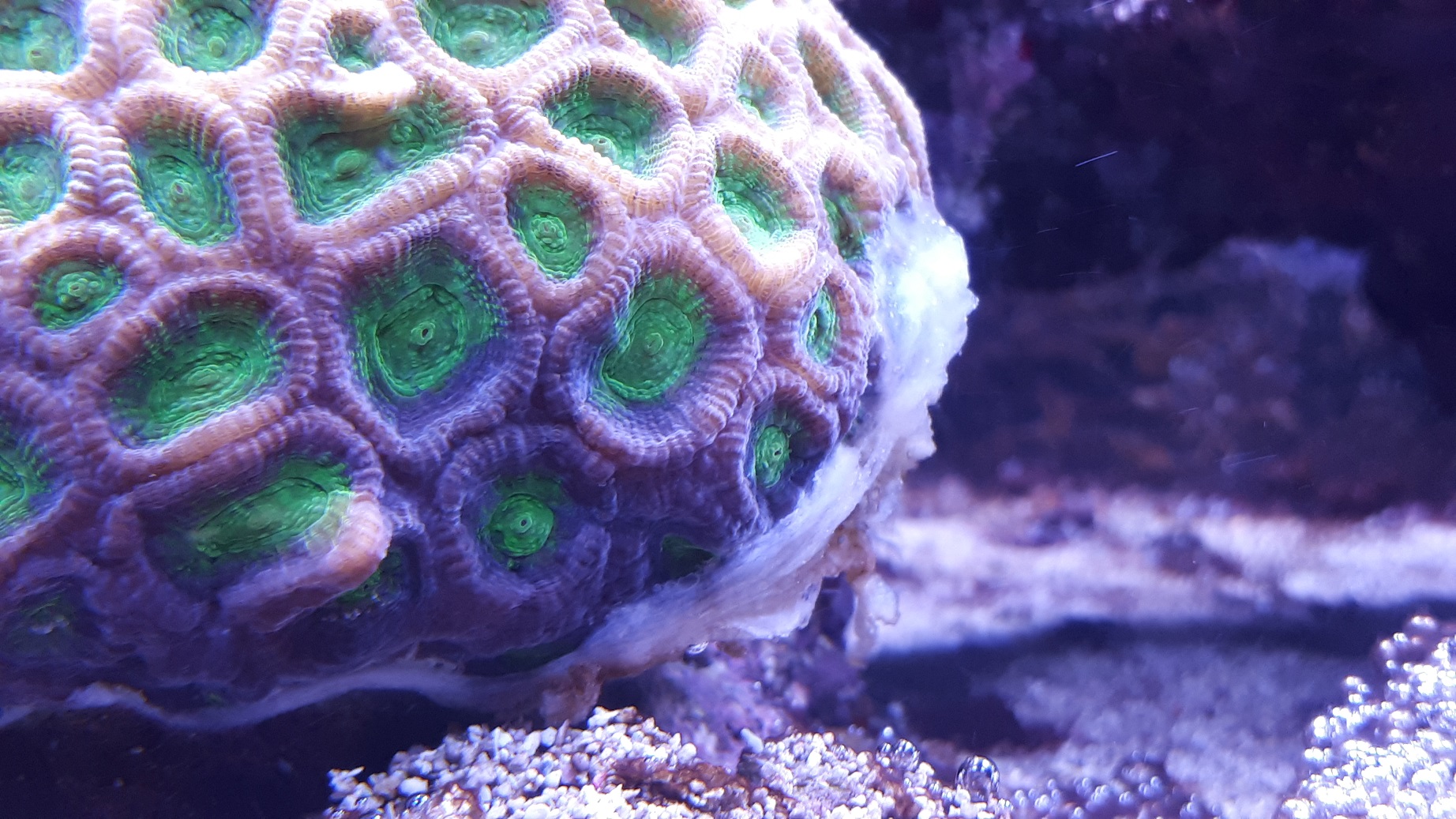 Muss es mal wenn es eindunkelt beobachten ob ich was erkennen kann. Die Koralle ist mittlerweile so mit der Keramik verwachsen, keine Chance diese wieder wegzubekommen.
