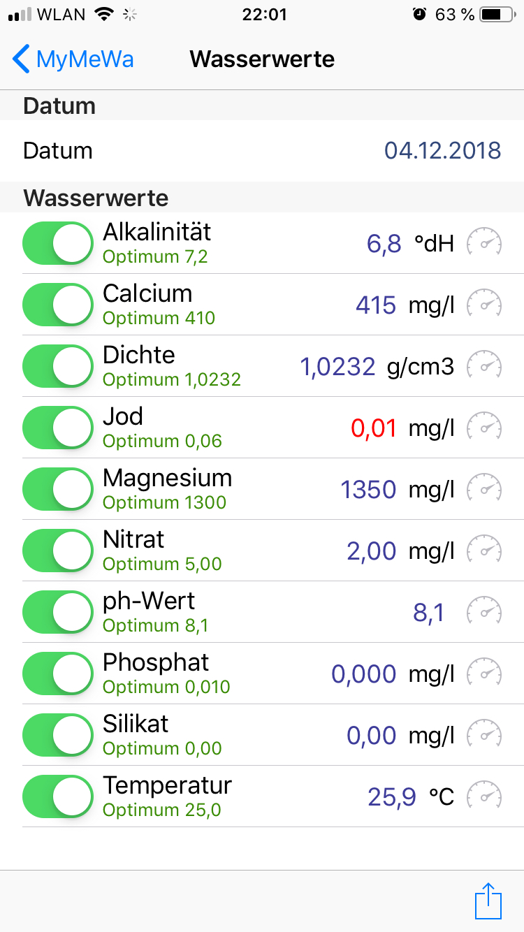 Jod hatte ich heute nochmals gemessen und wieder 0,01mg/l raus bekommen. Liegt das an mir oder lässt sich Jod nicht wirklich gut nachweißen? Dosieren werde und hab ich aber natürlich nichts.