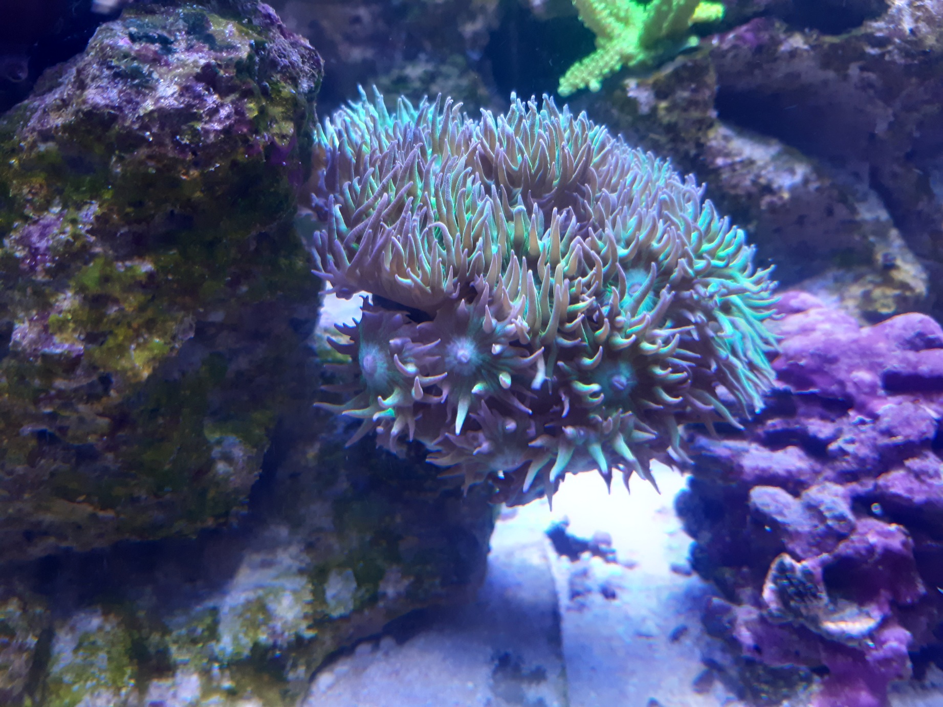 Die Korallen stehen aber relativ gut und zeigen auch Wachstum.