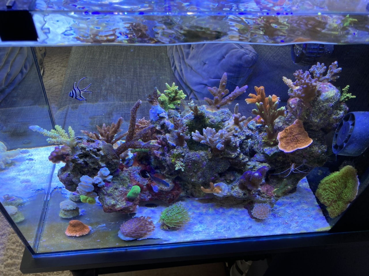 deine Tiere stehen ja alle sehr gut, so sind die Cyanos optisch störend, ggf. kannst du versuchen sie mehrmals täglich vom Gestein abzublasen.