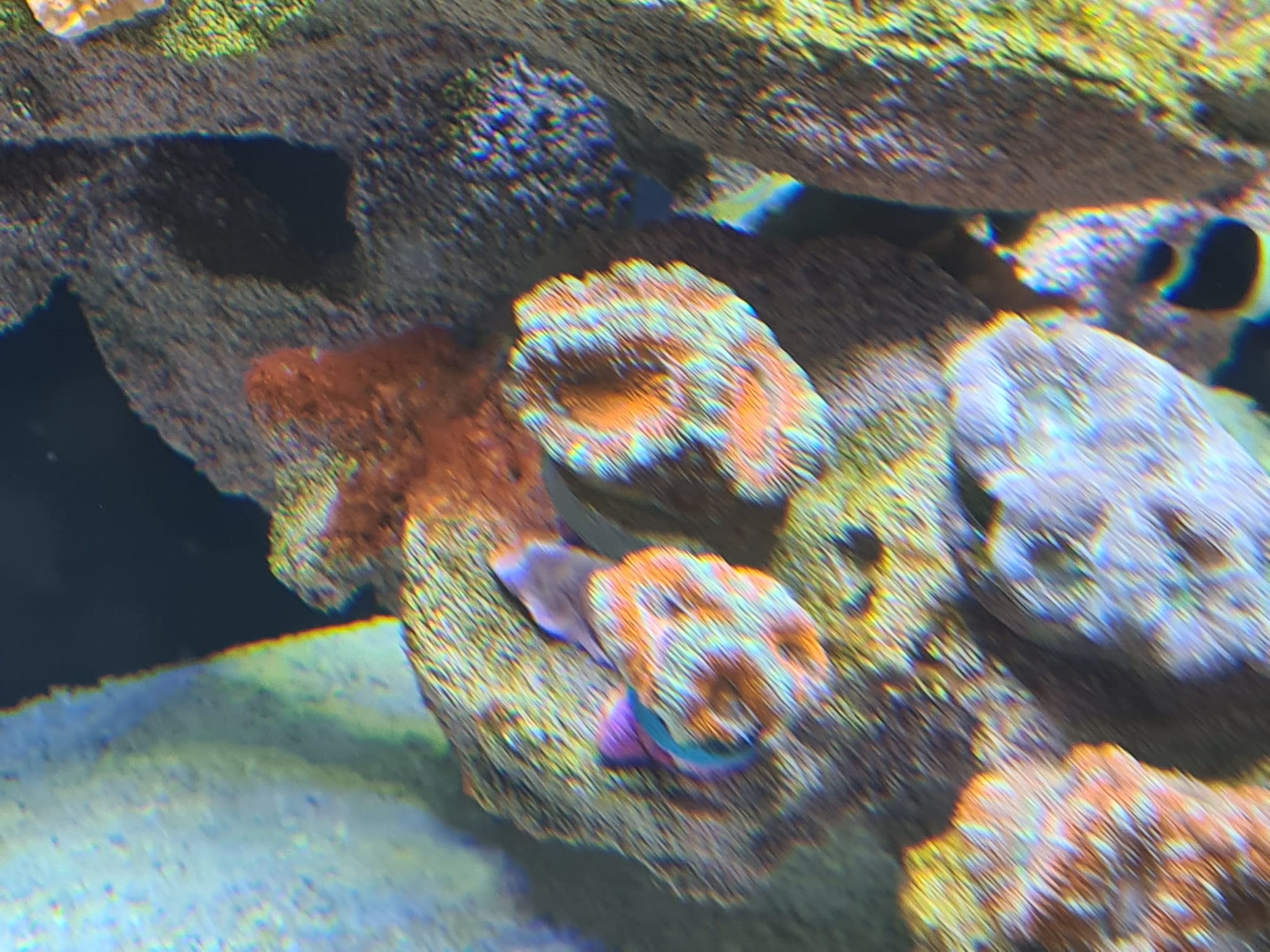 Die Goniopora musste ich entfernen, diese war aber davor unten Rechts angesiedelt und ist dort leider gestorben (denke das Cyano auf ihr drauf war), ich dachte ich könnte sie noch Retten wenn ich sie in die Mitte einwenig in die Strömung stelle.