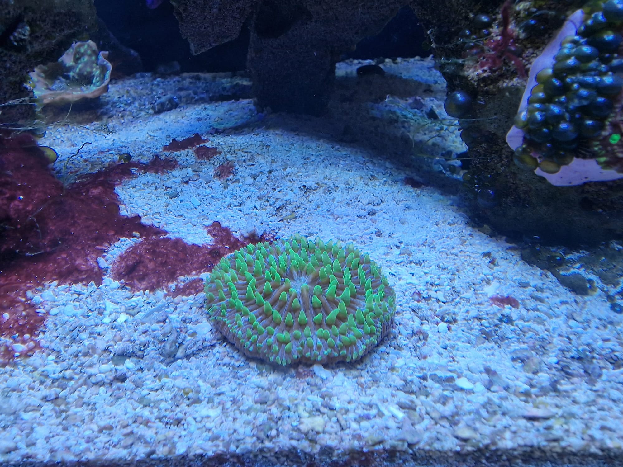 Tag 1 steht die Fungia TOP ab Tag 2 ist sie kurz vorm Tod egal wo ich sie platziere, warum auch immer, die Garnelen?