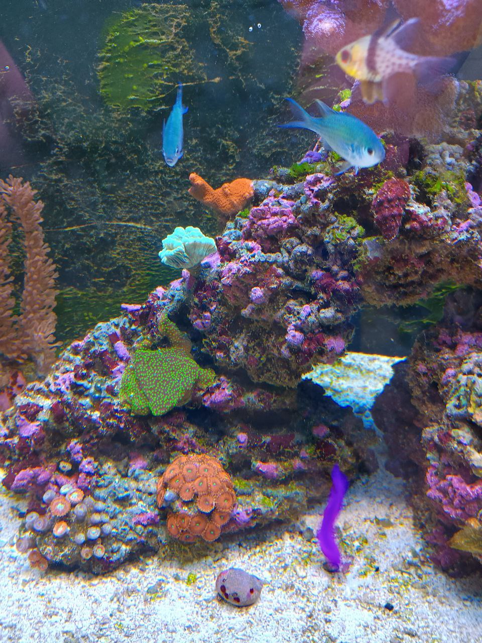 Die grünen Cyanos sind dabei weniger zu werden. Vor allem auf dem Gestein ist es am besten zu sehen. Ein Foto wird die Tage kommen. Seit knapp einer Woche, also kurz nach der ICP entnahme habe ich das Becken auf Sangokai umgestellt. Das Balance System läuft natürlich komplett und das Basis System ist noch in der ersten Wochen der eingewöhnung. Wasserwechsel habe ich nun seit der Heimkehr aus dem Urlaub nicht mehr gemacht, also knapp 3 Wochen. Ich habe auch das Gefühl das die fehlenden Wasserwechsel mit jeweils 25 Liter auf 150 Liter netto und die Beleuchtungsreduzierung auf 10 Stunden ganz viel gebracht haben.