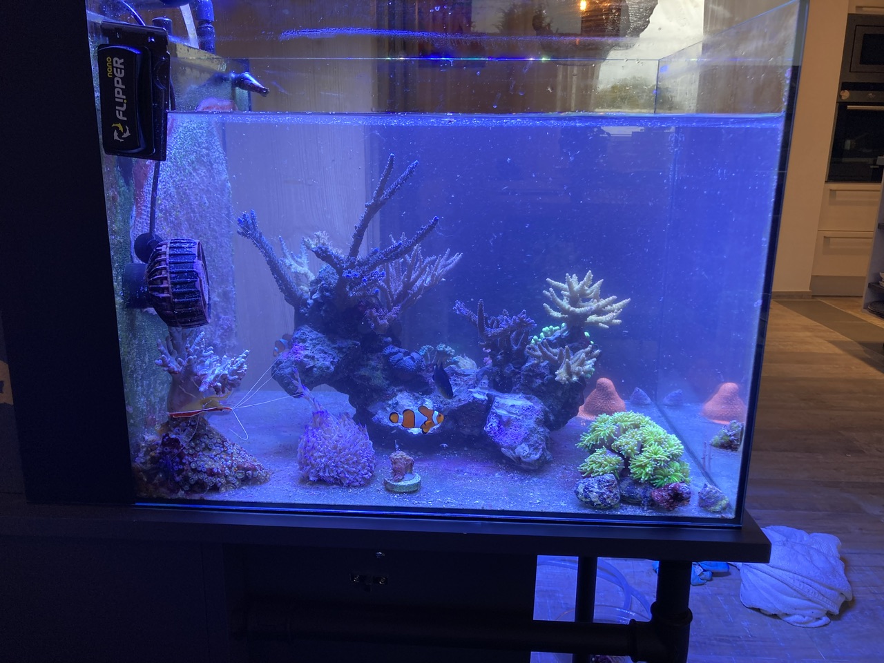 Das Licht ist schon von 70 auf 60% reduziert (ca. 250 PAR bei 15 cm Wassertiefe) UV ist schon lange auf 20 und V auf 90.