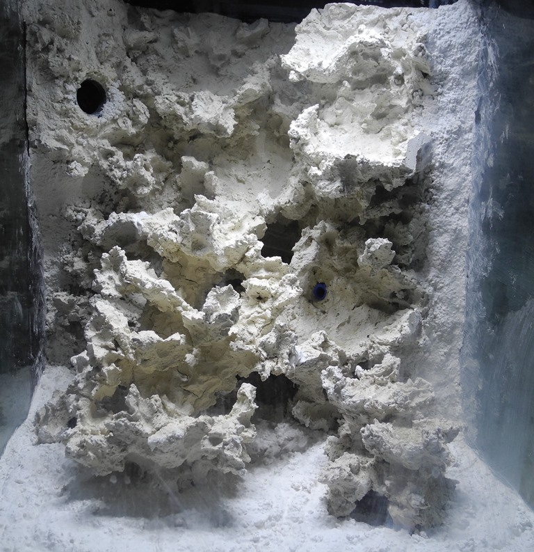 Da ich bisher immer ein Algenrefugium angeschlossen hatte und damit sehr gute Erfahrungen sammeln konnte, habe ich überlegt, wie dies bewerkstelligt werden könnte. Nachdem ich mich dazu durchgerungen hatte, musste ich feststellen, dass ein einfaches kleines Refugium nicht gerade billig ist. Also bin ich beim SERA Cube gelandet. Dieses habe ich mit einer normalen Rückwand von Korallenwelt versehen. Im beiden Becken sind ansonsten nur ganz normale Kaufteile verarbeitet wurden, überwiegend Äste usw. Als Fisch würde ich bei mir sofort einziehen, da ich jede Menge Höhlen, Verstecke usw. anbieten kann. Allerdings auch jede Menge Siedlungsfläche usw. Mal schauen, einfach im Hinblick auf ein tolles Korallenwachstum habe ich es mir damit nicht gemacht.