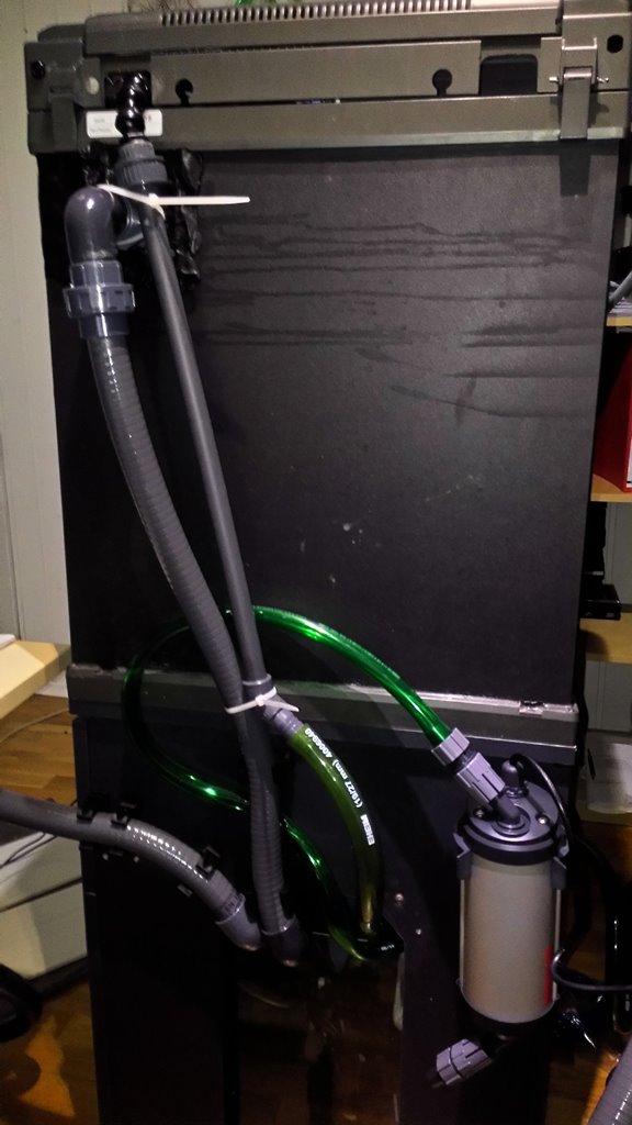 Zusätzlich stehen zwei Fließbettfilter für Notfälle parat (Kohle, Adsorber…..) An das Technikbecken ist noch eine UV-C Anlage angeschlossen und ein Aqua-Medic Titan 150, da das Becken unter dem Dach steht.