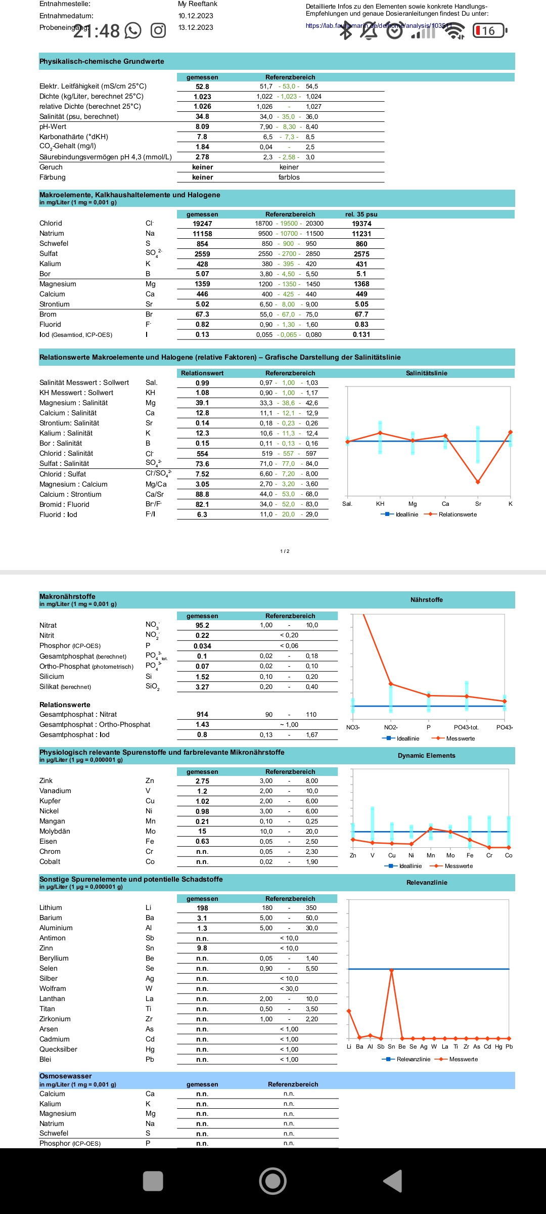 Letzte Messung vor der letzten ICP waren 40mg/l Nitrat, also im Vergleich zur Icp davor 20mg/l weniger. Was mich motivierte und mich auf eine besser aktuelle Icp hoffen lies. Doch diese kam gestern und versetzte mir einen Schlag.
