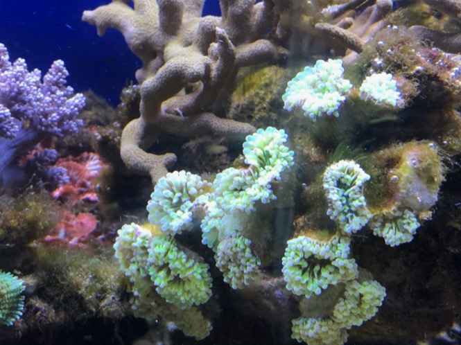 - Besatz: 2 Clownfische, 3 Riffbarsche, 5 Einsiedler, die eine oder andere Schnecke, die den Eingriff überlebt hat.