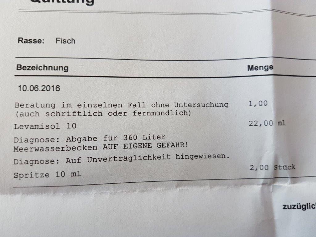 Die Lösung aller Probleme brachte letztendlich unser Tierarzt, der uns einen Spezialisten in München empfahl. Dieser Tierarzt für Reptilien und Zierfische war gut zu erreichen und verschrieb mir den Wirkstoff "Levamisol 10".