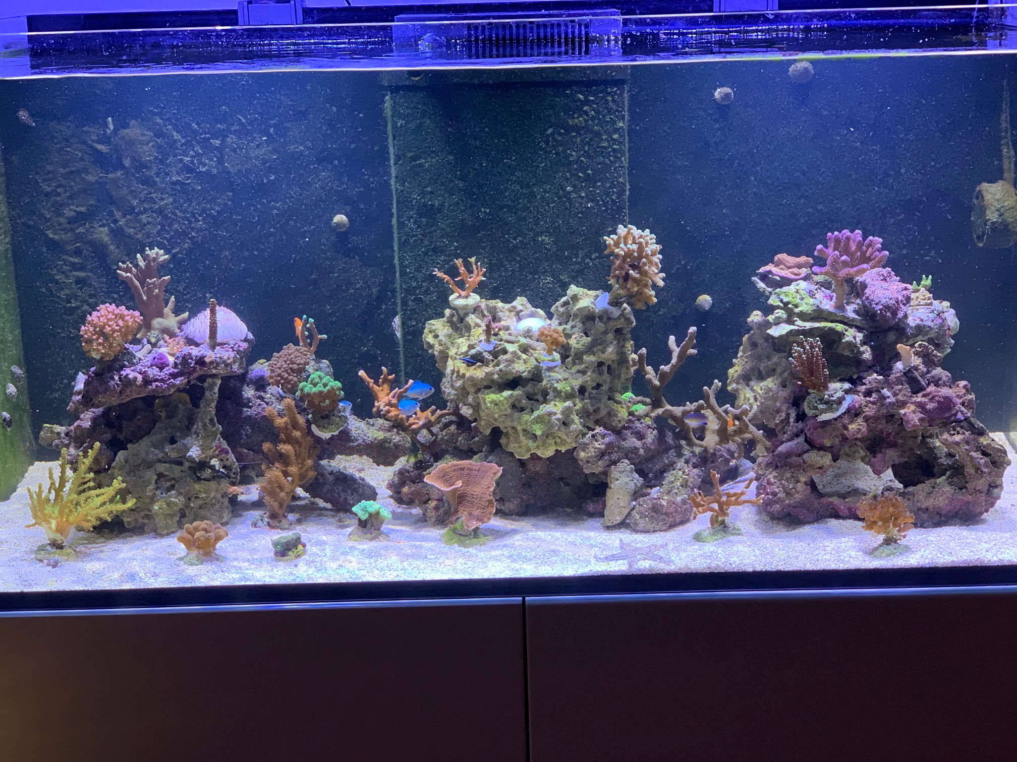 deine Korallen sehen mir alle sehr braun aus, würde für mich, bei dem niedrigen Po4, im ersten Moment für zu viele Spurenelemente sprechen.