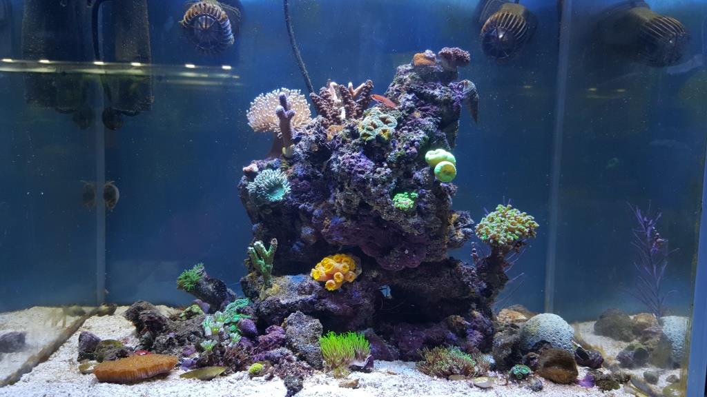 Seit längerer Zeit hat die MW Aquaristik fasziniert und daher habe ich im April 2015 ein 30 l MW Nano gestartet. Nach 1 Monat Laufzeit habe ich erst einmal ganz einfach mit Weichen, Zoas, Anemonen und "einfachen LPS" (Euphy, Arcans etc.) begonnen.