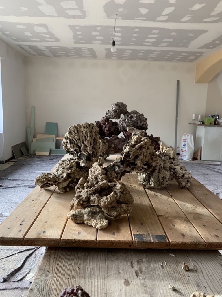 Der Aufbau wird aus Real Reef Rocks, totem Pukani Riffgestein und ein paar kg Lebendgestein, welches direkt für mich importiert wird, bestehen.
