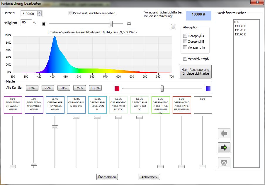 so schaut die Beleuchtung ok aus. Was ich nur, wenn möglich ändern würde, ist der Peak bei 100 %.
