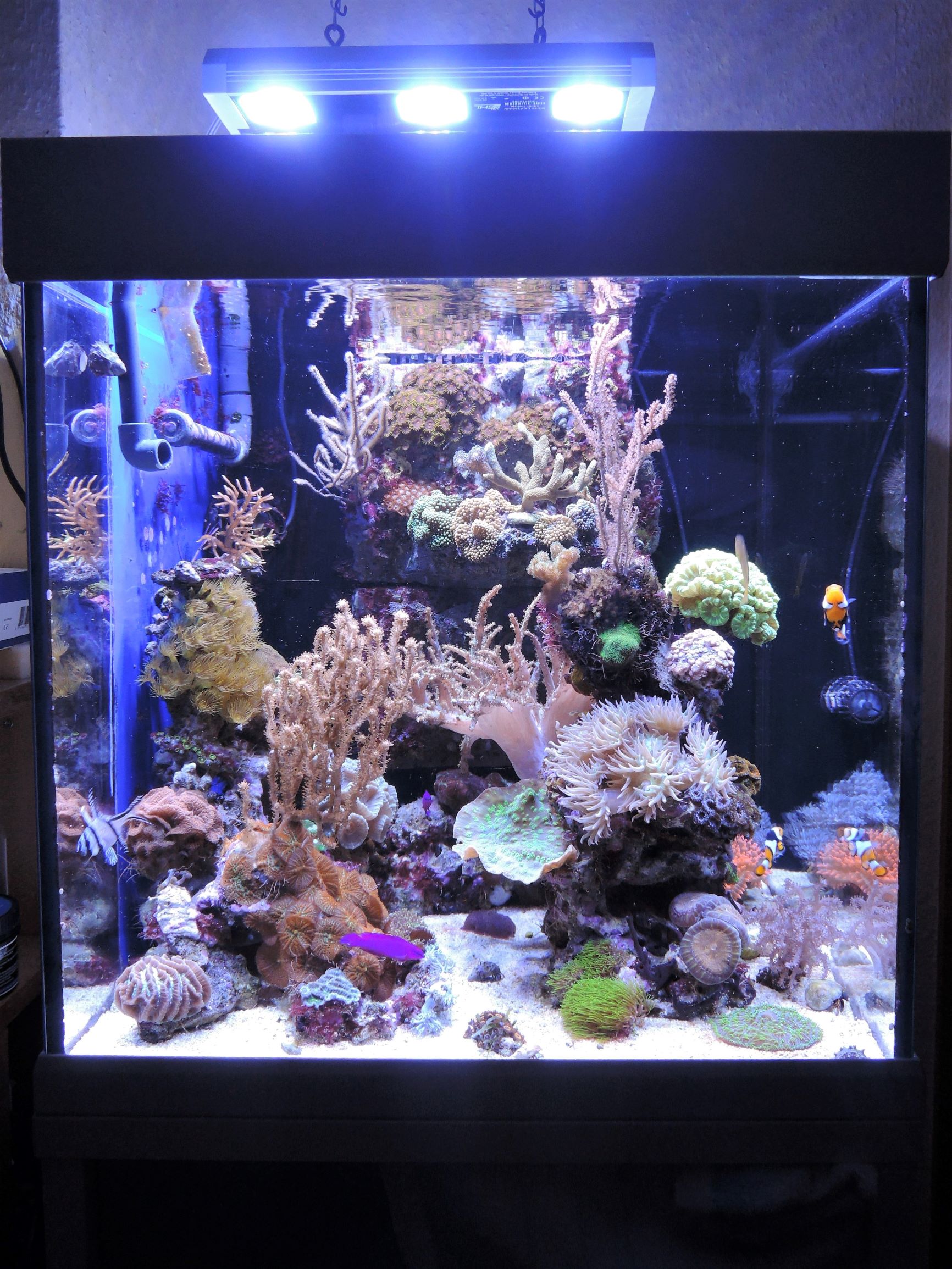 Seitdem habe ich am Aquarium nichts mehr gemacht, außer täglich nach Plan die Sangokai Produkte zu dosieren. Außerdem sind diese Woche noch ein Pärchen Clownfische (A. percula) eingezogen.