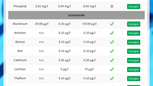 Hi, ich würde die complete Dosis auf jeden Fall reduzieren oder weg lassen, Nitrat ist deutlich nachweisbar. Ansonsten ist die Analyse unauffällig. Eisen ist sehr wahrscheinlich das Rieselhilfsmittel im Salz nach dem Wasserwechsel/Umbau. Barium ist rot markiert, das ist aber physiologisch nicht relevant, das ist zwar im Meerwasser von Natur aus drin mit ca. 10 µg/L, aber spielt physiologisch keine Rolle.