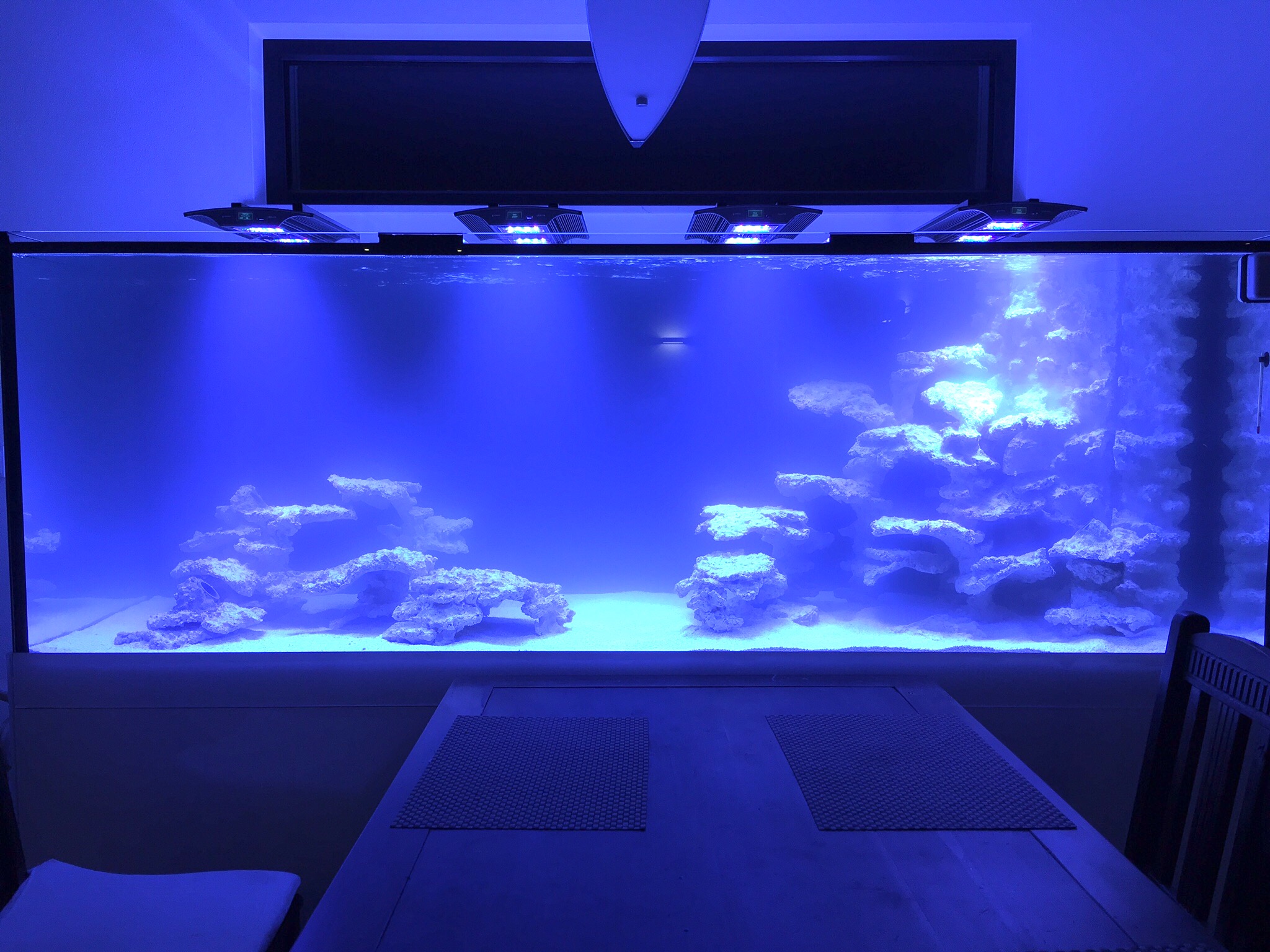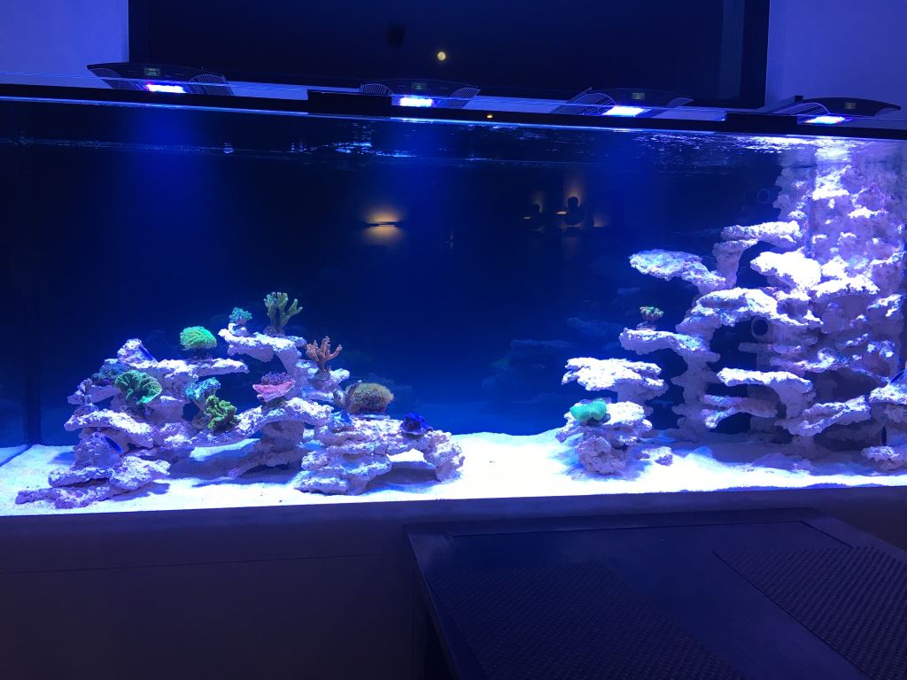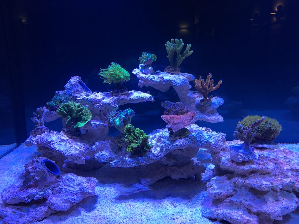 Eingesetzt habe ich die Tiere übrigens am Tag 5. Zu Anfang gleich mal zwei Bilder wie es jetzt aussieht. Die Korallen sind erstmal nur reingestellt - die müssen noch an den richtigen Plätzen je nach Licht und Strömungsansprüchen vermörtelt werden. Mach ich heute. Insgesamt geht es ihnen aber ganz gut denke ich.