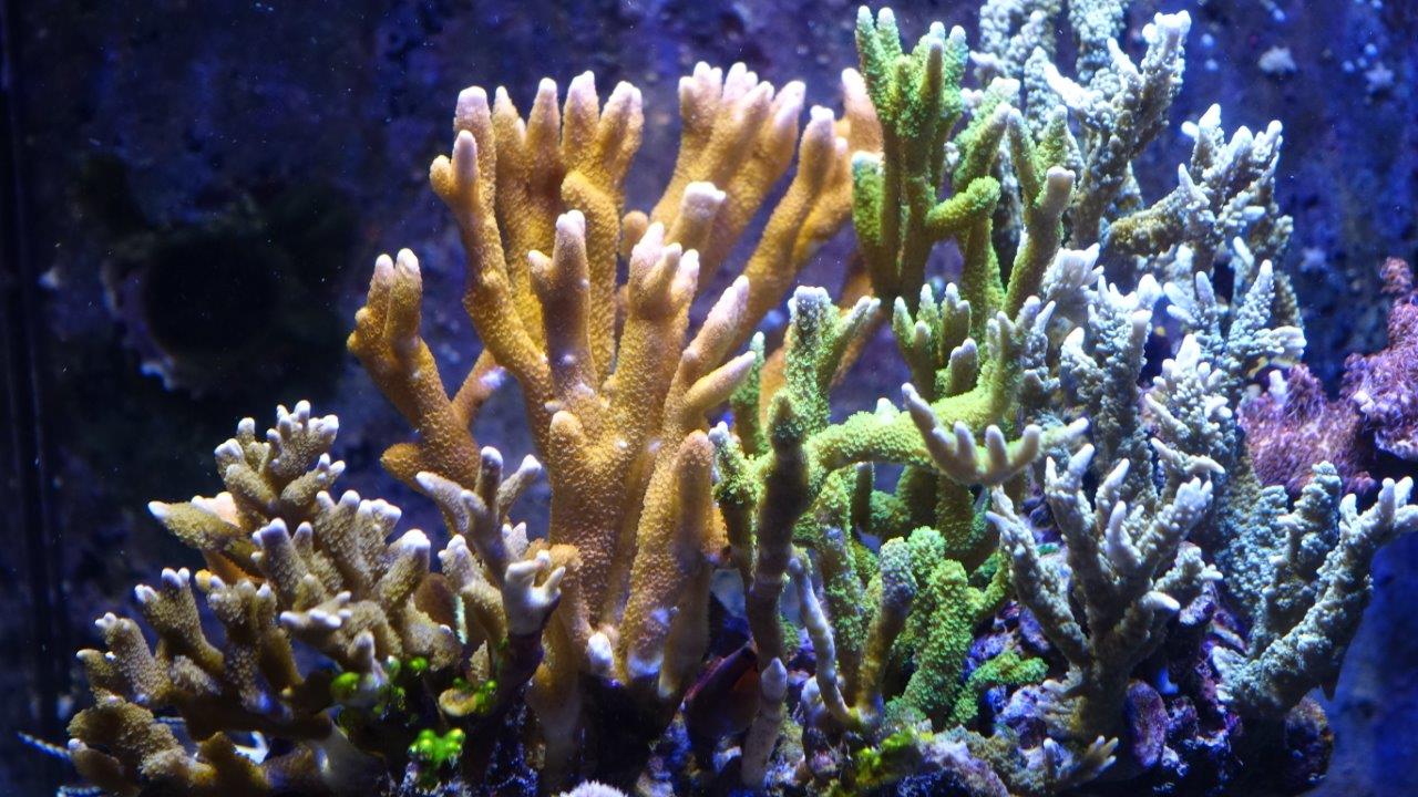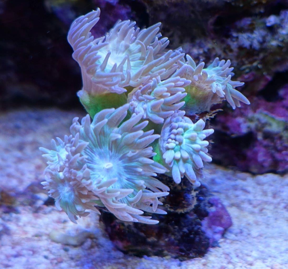 Ansonsten bin ich aber wirklich zufrieden, die Korallen sehen sehr gut aus und wachsen mal wieder ordentlich. Seit ich die kleine Bartkoralle ab und zu extra füttere, bekommt sie auch neue Polypen.