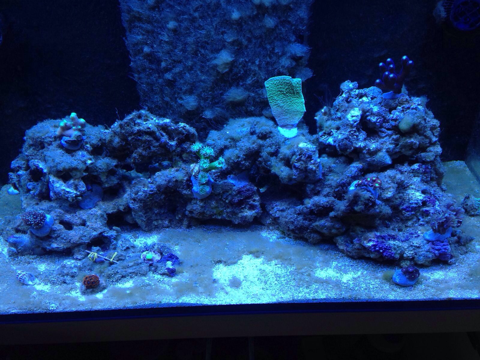 Ich denke, dein Problem ist die "Einfahrphase". Da hast du allen Organismen Zeit gegegeben sich zu etablieren, nur nicht dem was du pflegen willst - Korallen. Dein Aufbau ist auch komplett dicht in der Mitte. Da wird wenig umgesetzt. Die Strömung im vorderen Bereich musst du demnach unbedingt anpassen.