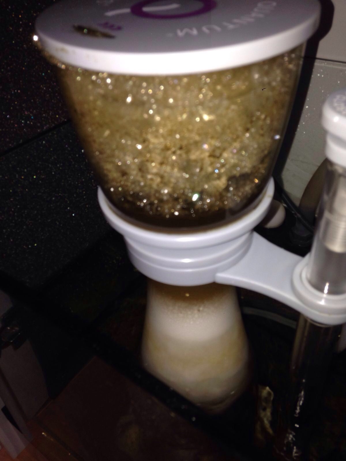 Auf dem Foto vom Abschäumer auf der ersten Seite sieht man extrem viel trockenen Schaum im Abschäumer, wobei der Wasserstand da auch ganz niedrig ist, das sieht sehr komisch aus. Kannst Du bitte nochmal ein Bild vom Abschäumer machen, so wie er aktuell läuft.