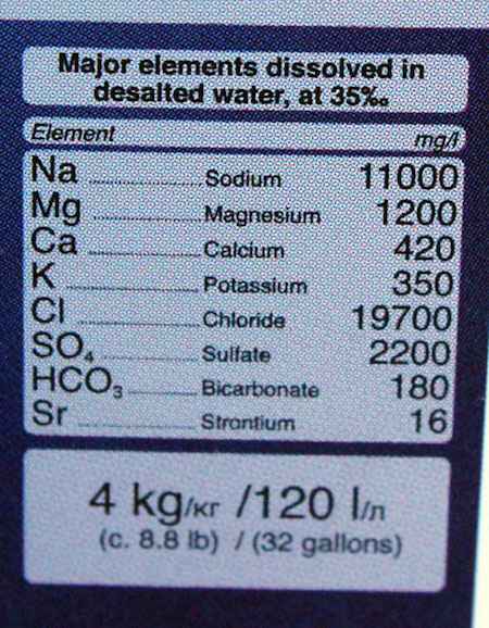 Bitte kein Aqua Medic Salz benutzen (ein Salz mit deklarierten 16 mg/L Strontium, aber mit einem niedrigen Mg-Gehalt, was ergibt das für einen Sinn? Strontium wird in der Konzentration sofort ausfallen)! Was hast Du denn mit Magnesium, der Wert ist bei Dir völlig egal? Du brauchst Bor und hier ist das Fauna Marin Salz ein Salz, dass einen guten und leicht erhöhten Borgehalt hat. Bei Aqua Medic ist Bor nicht mal deklariert.