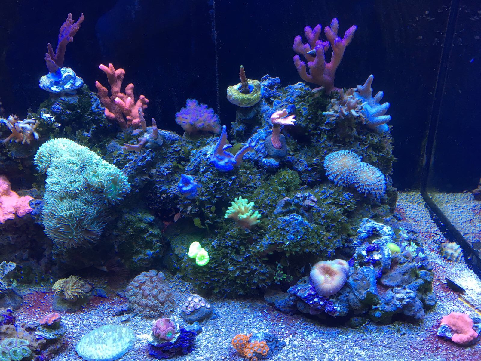 Ich beleuchte mit einer ATI Sunpower 4x39 Watt T5. Zur Zeit sind 2x Coral plus und 2x Blue plus Röhren von ATI eingesetzt.