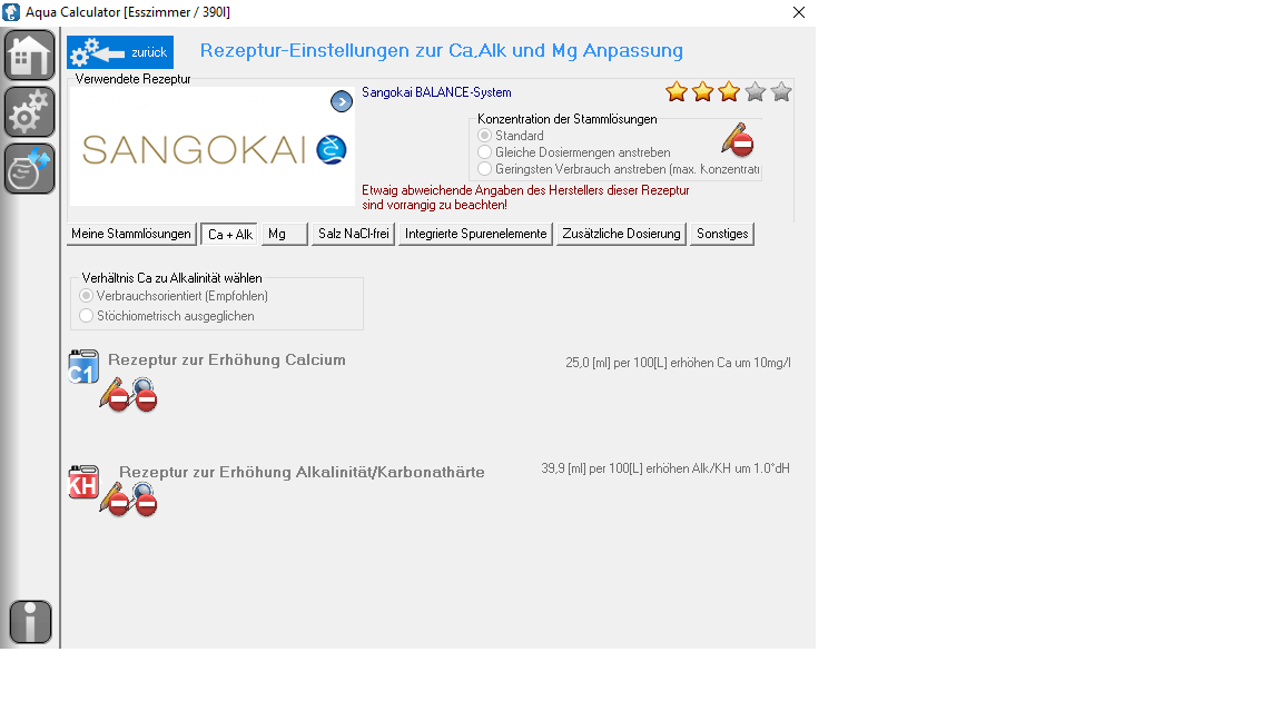 Bin immer auf "Einstellungen" und dann auf "Ca, Alk und Mg Rezeptur (Balling)", das war falsch.