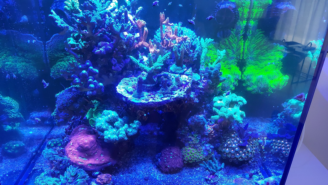 Aktuell habe ich seit ca. 3 Jahren ein Reefer 170. Eingerichtet ist es mir RRR und etwas Fiji Sand. Vielen Korallen, zwei Riffbarsche, eine Scherengarnele, Mithrax Krabbe und gefühlt einer Milion kleinen Schnecken.