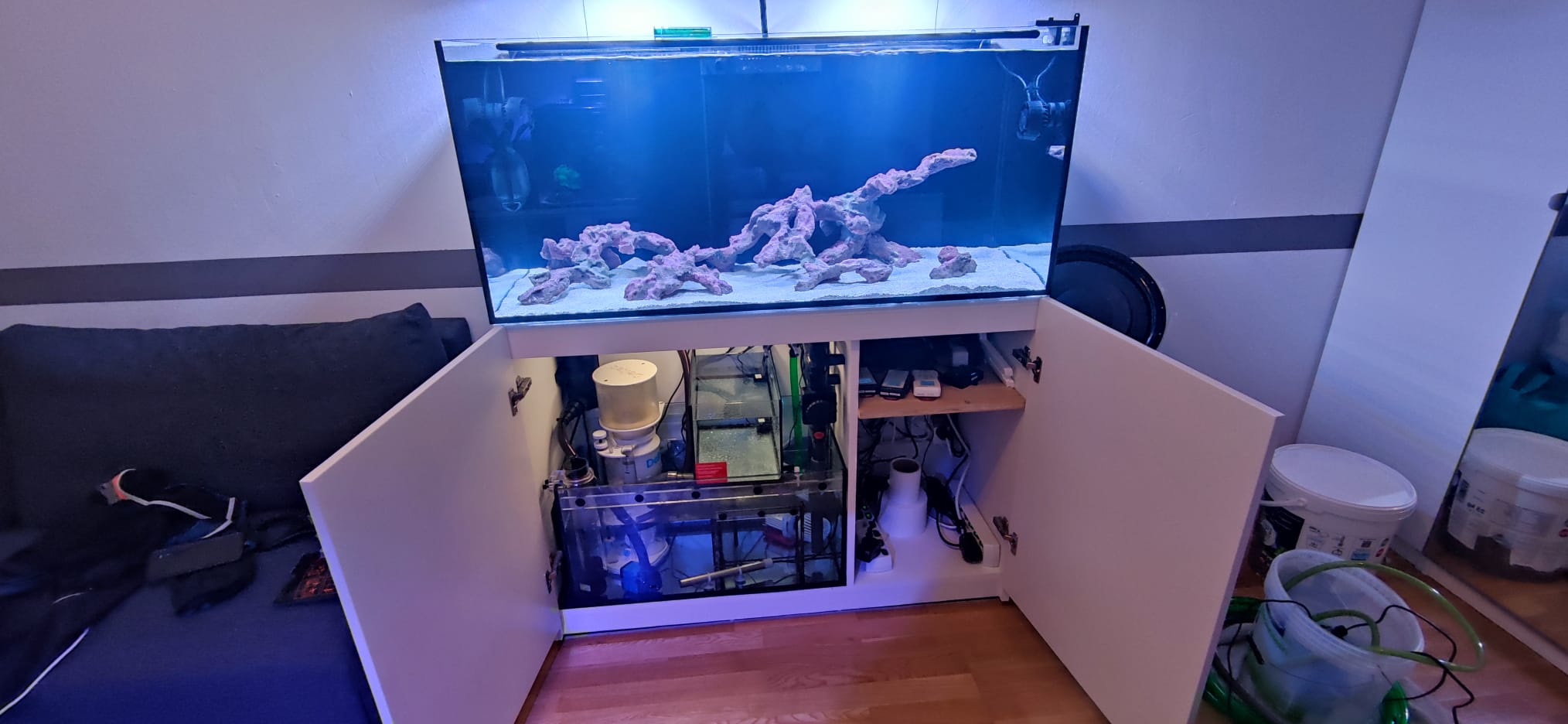 Nun steht ein 350er Reefer von Redsea hier, welches am Wochenende befüllt wurde.